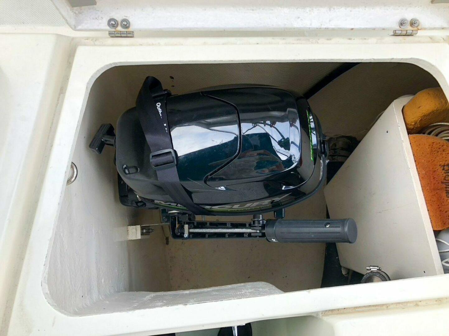 - Mercury 5 HP 4-cycle LPG outboard (2019) with two 10# aluminum tanks