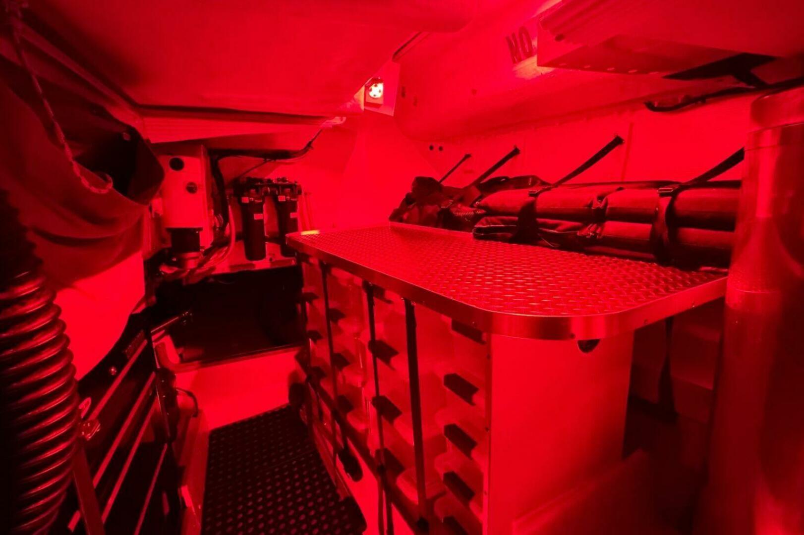 - Fire extinguishers (nav, staterooms, shop, engine compartment)