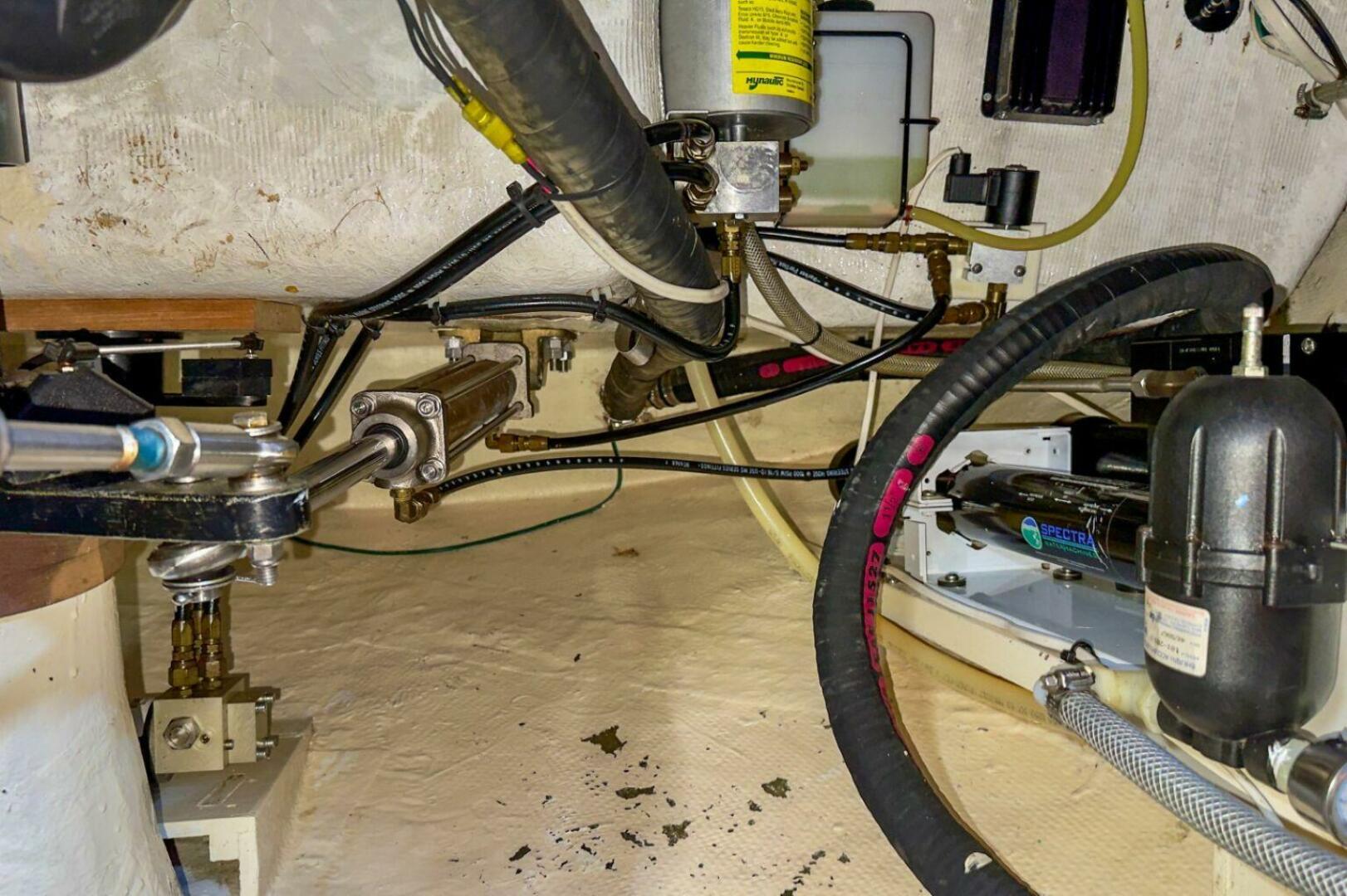 The Outbound 44 was designed with special attention to serviceability and reliability for owners cruising in remote locations. Systems access is outstanding throughout the boat, with removable panels, hinged seats, and thoughtfully placed hatches providing easy reach to critical components such as the engine, steering gear, fuel and water systems, and electrical distribution. The Yanmar 4JH2-HTE is located beneath the companionway with straightforward maintenance access from three sides. A dedicated machinery space houses key components and features a workbench with custom storage. Wiring, plumbing and thru hulls are well marked. Detailed service records and maintenance are available.