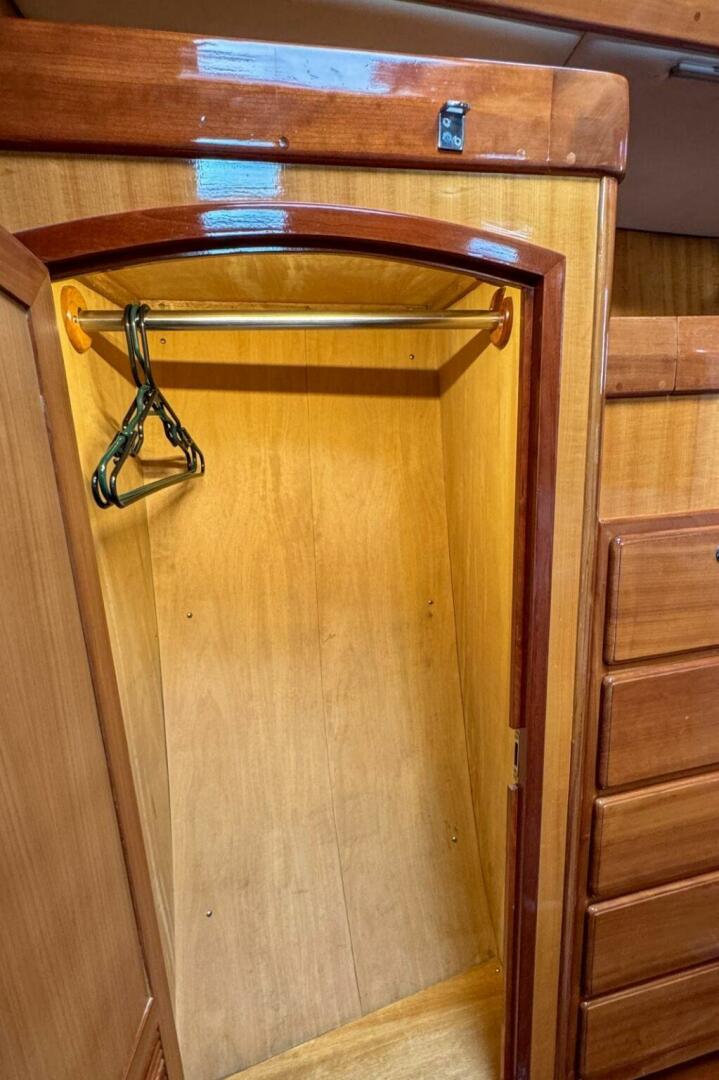 Aft Cabin: The aft cabin to starboard provides a double berth with lockers and shelving for personal storage. The hanging locker features an automatic light and there are reading lamps at the head of the berth. Three opening portlights and a deck hatch offer both light and ventilation. It is an inviting guest space in port and a secure off-watch berth underway. The warm wood joinery and quality finishes maintain the consistent feel of craftsmanship found throughout JOURNEY HOME.