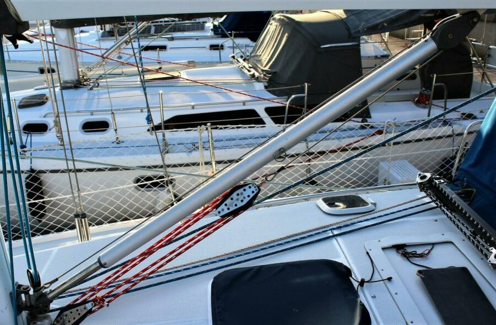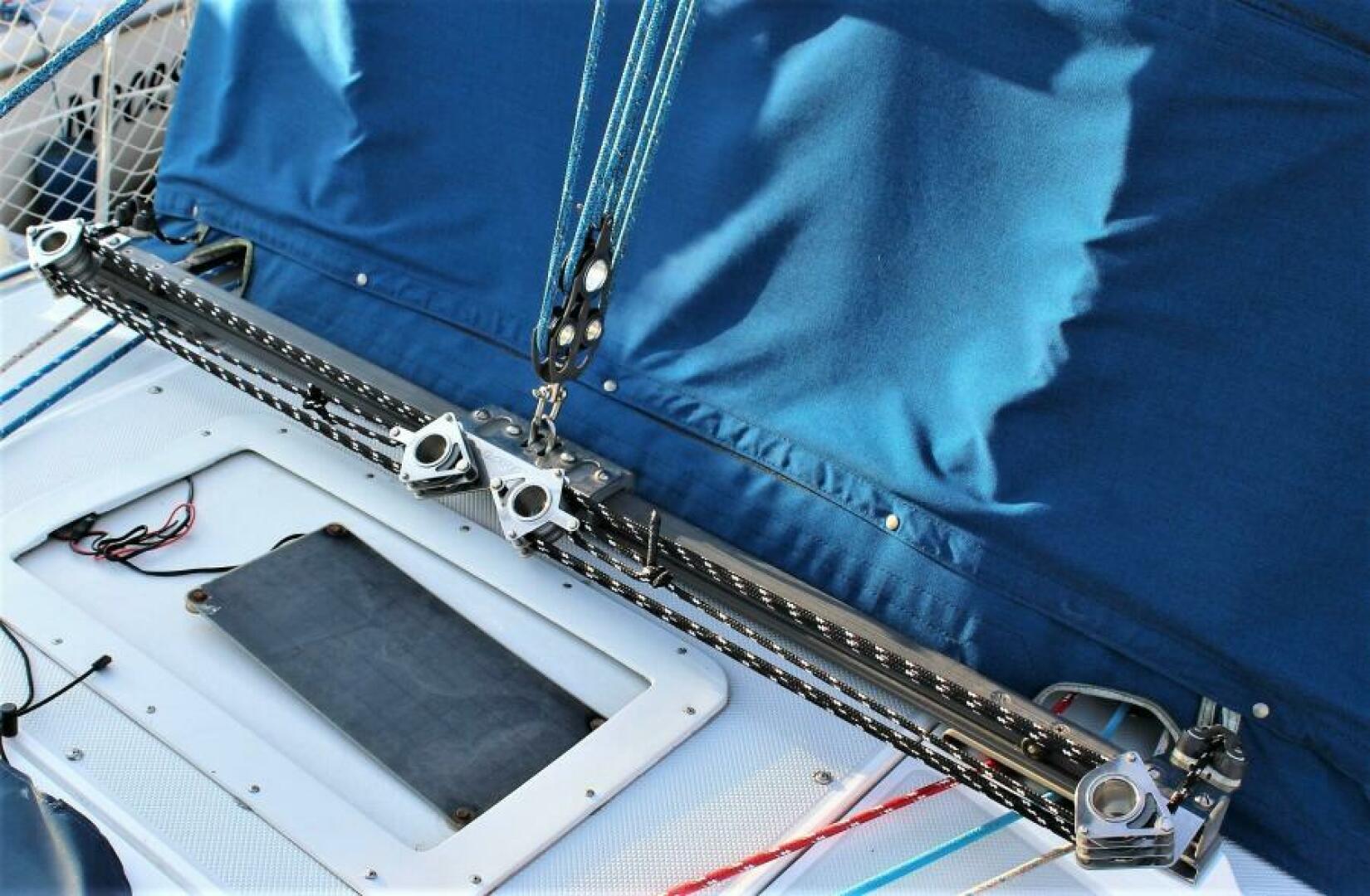 - Garhauer Mainsheet traveler mounted forward of companionway. The traveler is heavy duty, long and with excellent purchase for ease of use