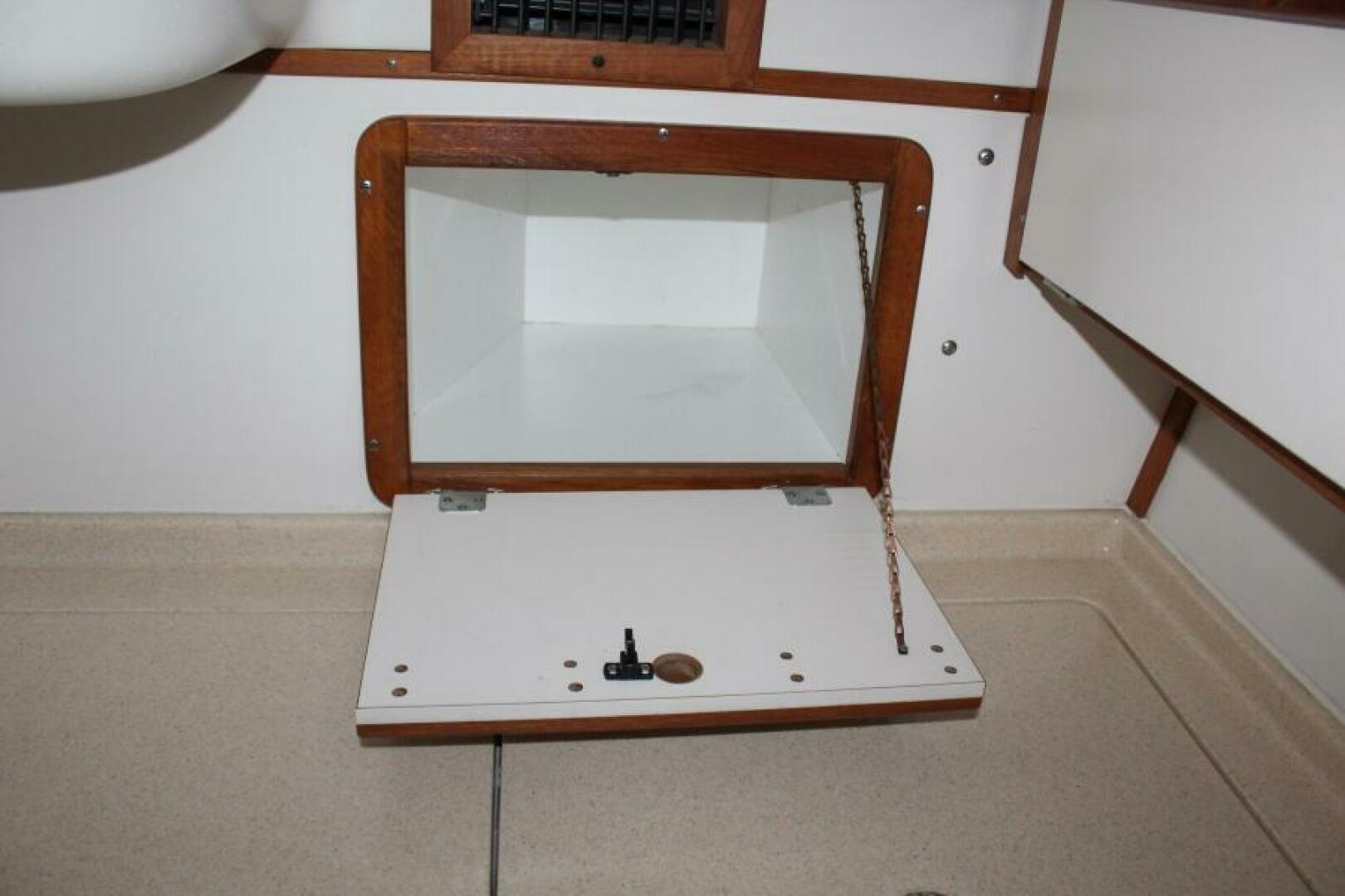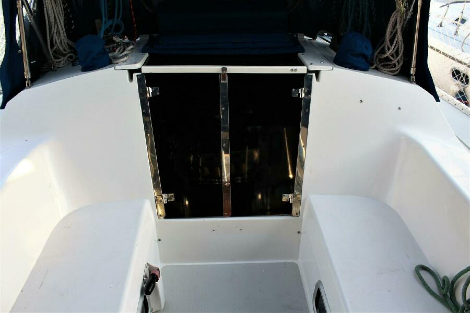 Two large inserts can be removed from the forward bulkhead to “open up” the boat, both for additional ventilation and for a feeling of spaciousness.