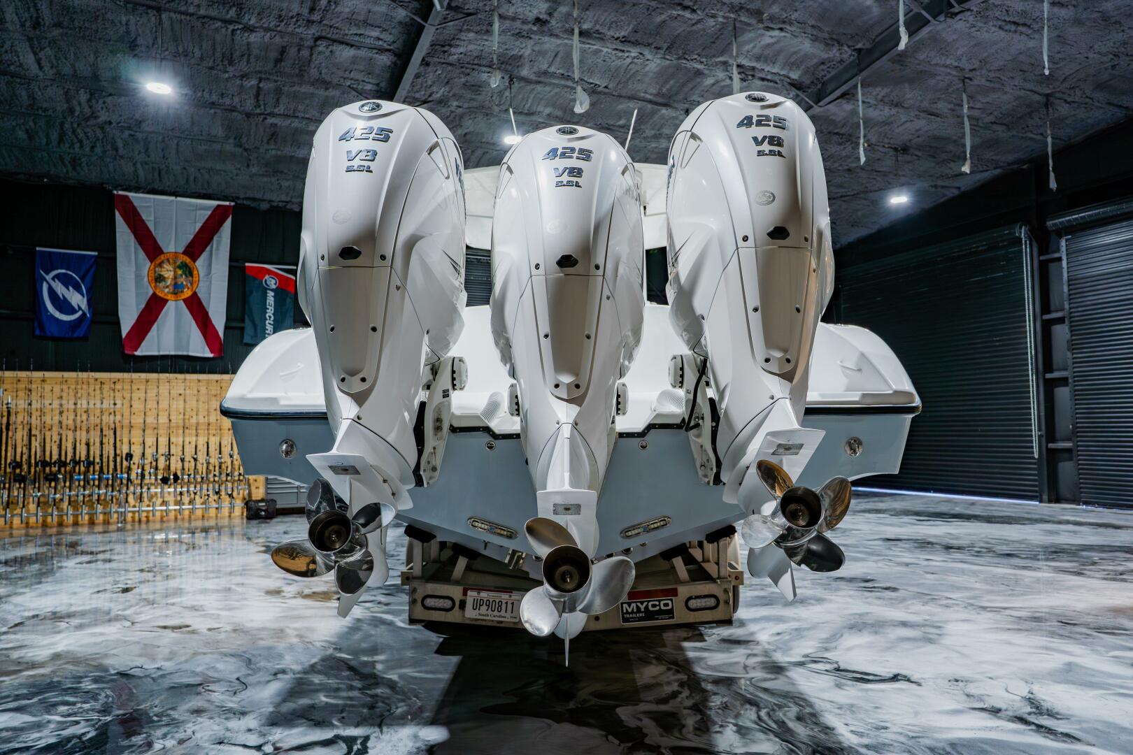 This Yellowfin 39 is powered by triple Yamaha 425 XTO V8 outboards with approximately 1,200 hours and joystick control. Featuring extensive storage, multiple livewells, a full Simrad electronics package, and a Myco trailer, it’s built for serious offshore performance and fishability.