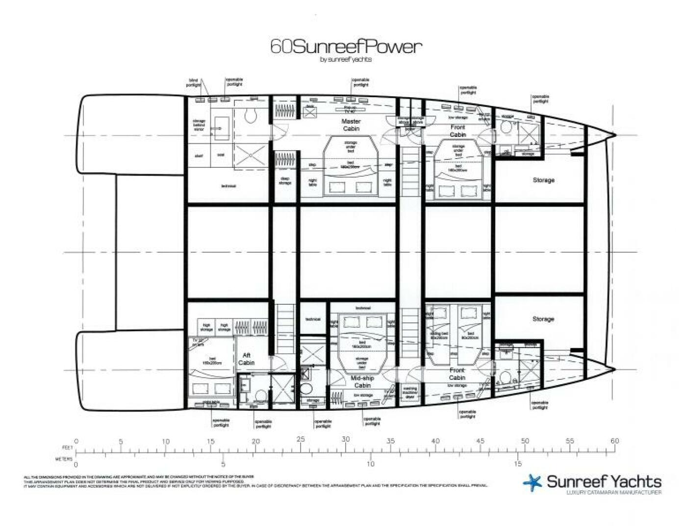 NERO *Preliminary Listing* “NERO” is the most highly customized SUNREEF 60 POWER CATAMARAN that has launched to date. No expense was spared by her owners in the development of her Machinery spaces, Galley, Stateroom layouts and appointments, and absolute top of the line electronic equipment and te