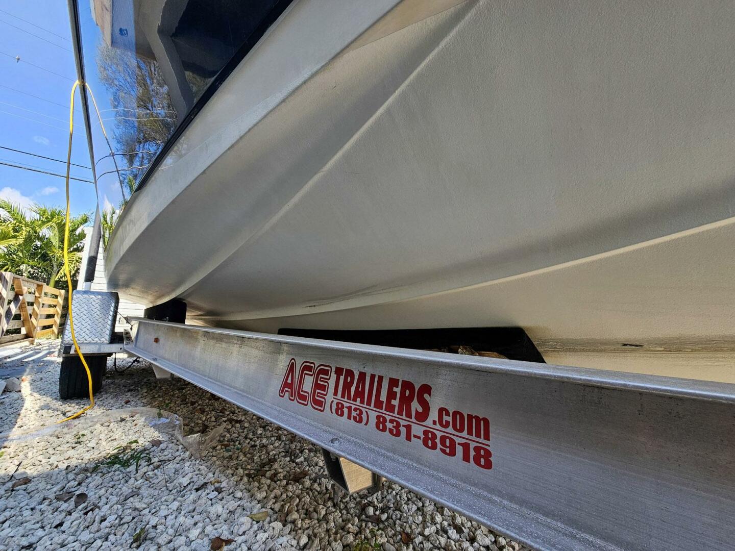 New to the market, stored on the included Ace Aluminum Custom boat trailer, in great shape and stored indoors since new until 2023, recently bottom painted with white bottom paint, many updates and options.
