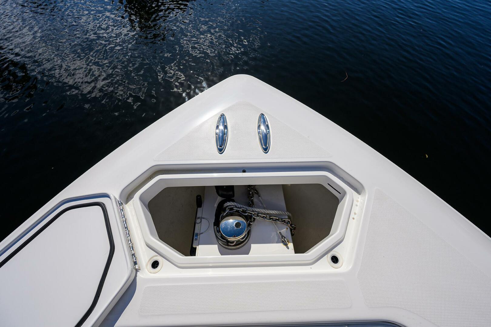 - Windlass in hull with custom anchor bracket