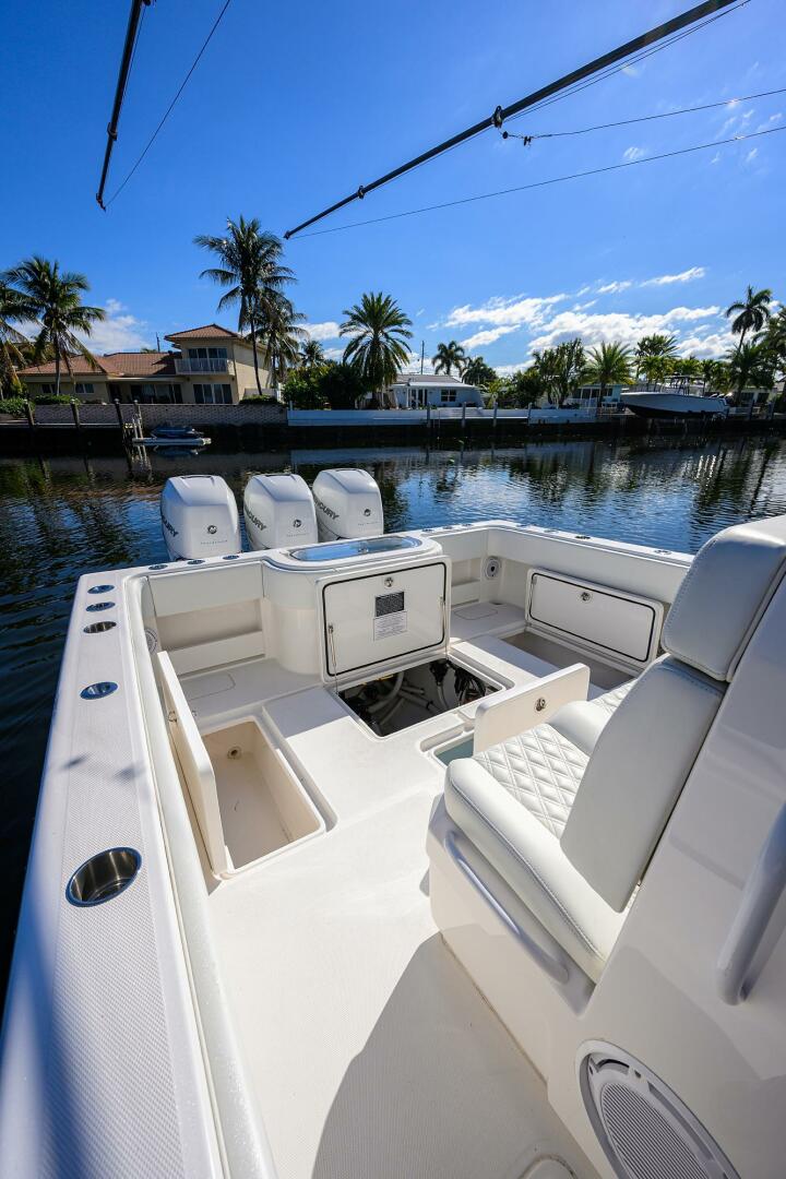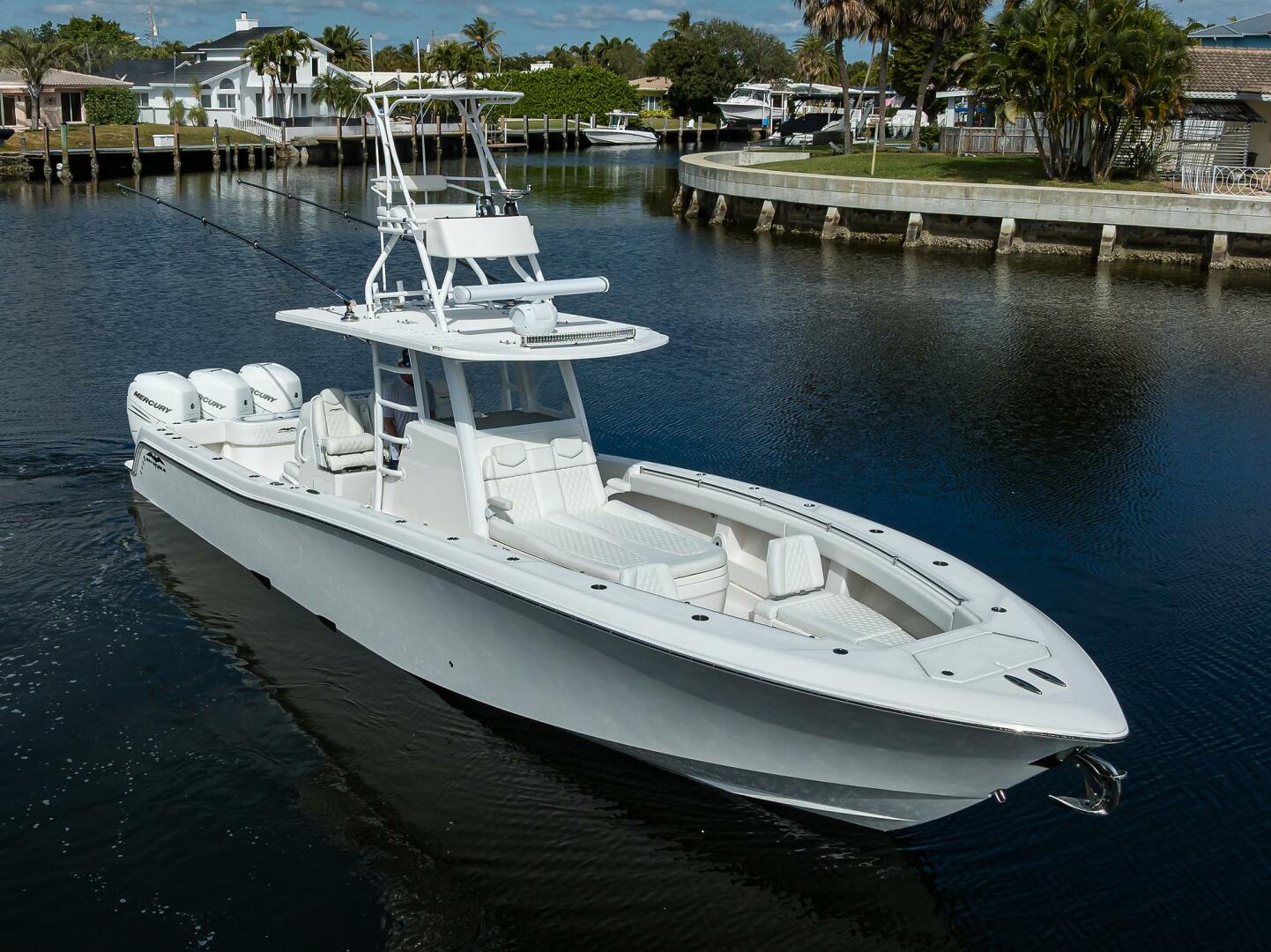 This boat is powered by triple Mercury 400 Verado outboards and features a massive 540-gallon fuel capacity, providing the speed and range necessary for serious blue-water runs. Equipped with a SeaKeeper 3 Gyro, it ensures a rock-solid, stable ride by eliminating roll in any sea state.