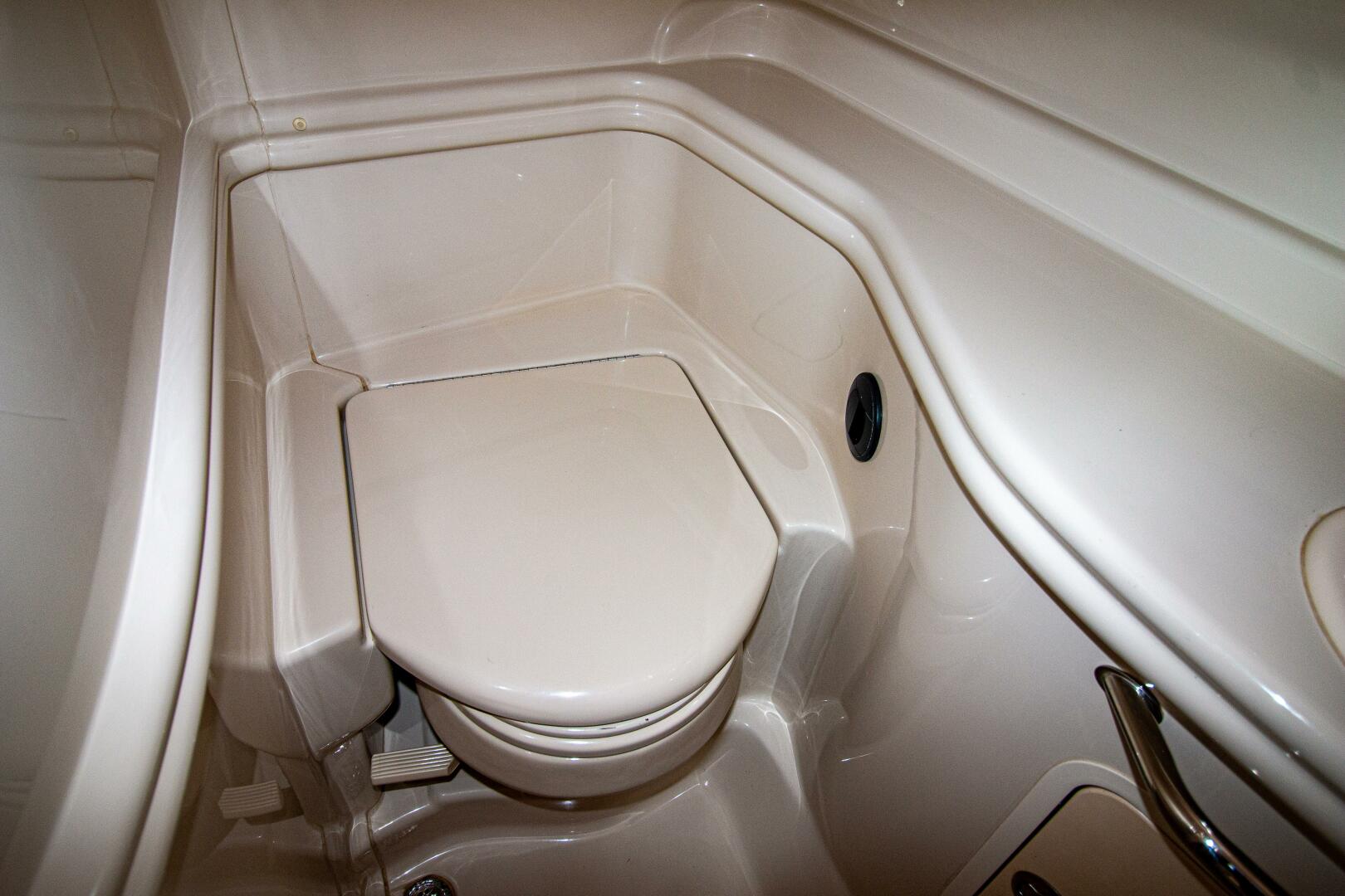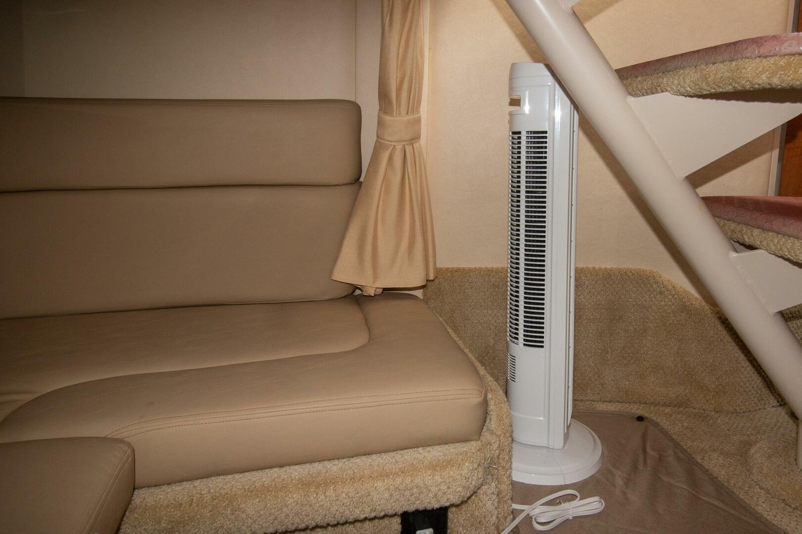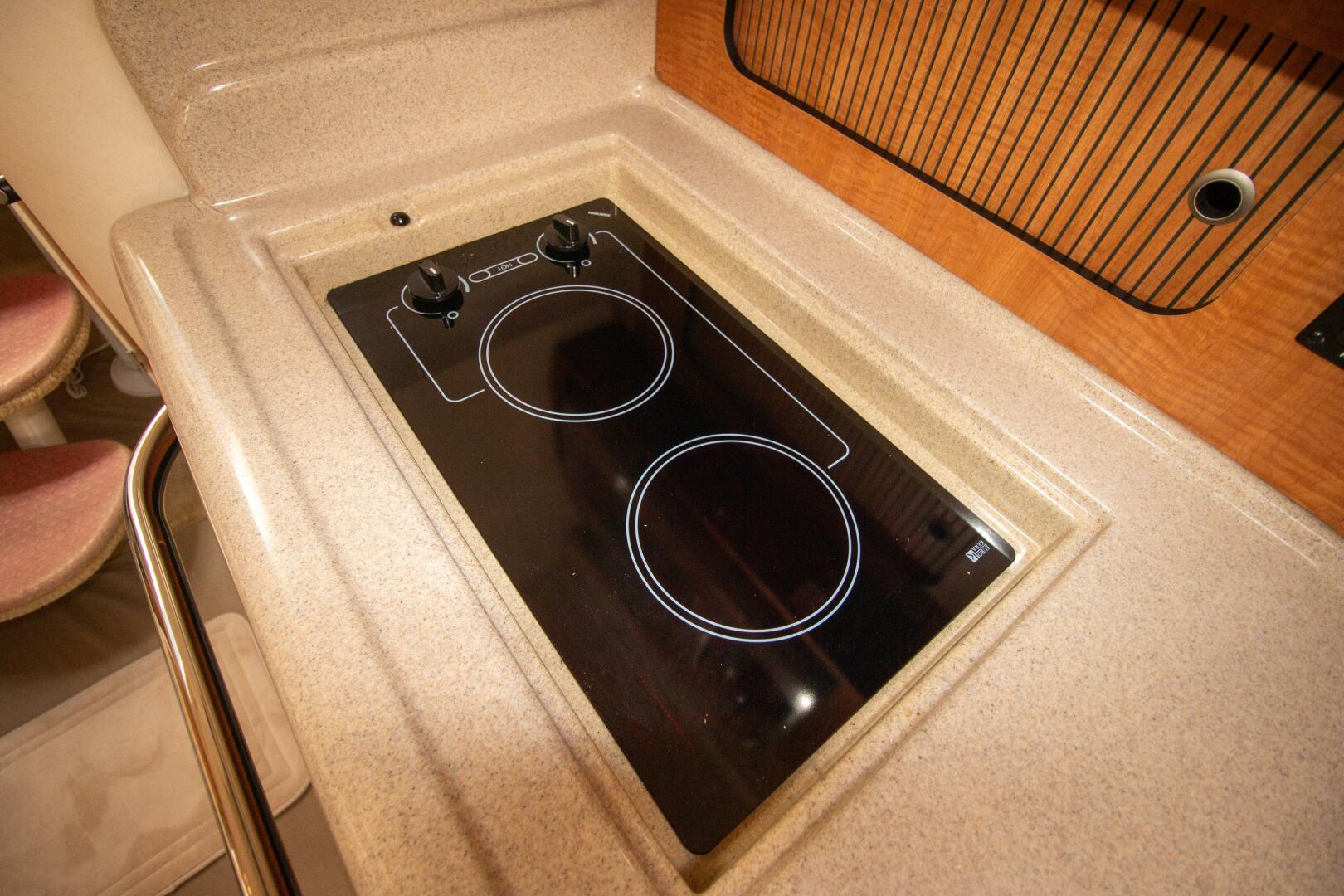 Stepping into the cabin feels like boarding a brand-new vessel—exceptionally clean, beautifully appointed, and featuring elegant countertops. There is ample storage throughout, creating a comfortable and uncluttered space for relaxing. Two flat-screen TVs and air conditioning further enhance onboard comfort, making this boat truly stand out.