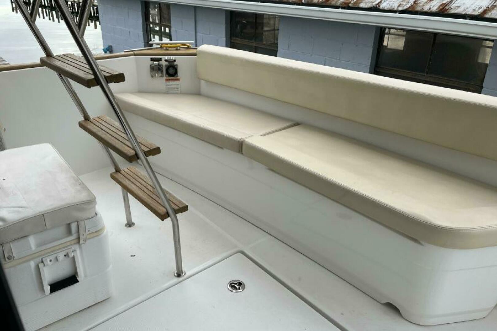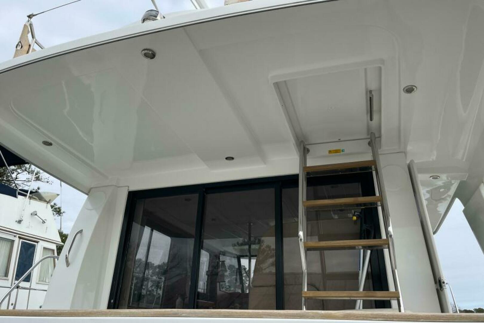 - Access to flybridge via solid fiberglass hatch wi hydraulic arm