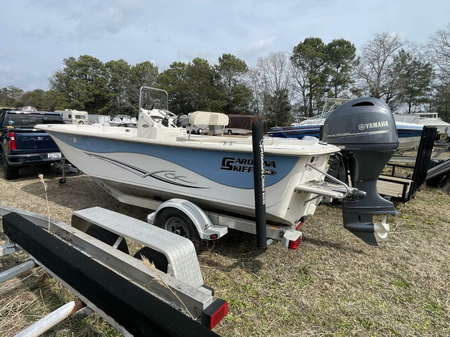 The 2019 Carolina Skiff 198 DLV is a versatile and reliable powerboat, perfect for both shallow- and deep-water adventures. It features a unique, modified Tri-V hull design, ensuring a smooth, dry ride. Powered by a 90HP Yamaha engine with approximately 49 hours, this skiff is equipped for effective, enjoyable excursions. The 19' 8" length and 8-foot beam provide stability and ample space on board.