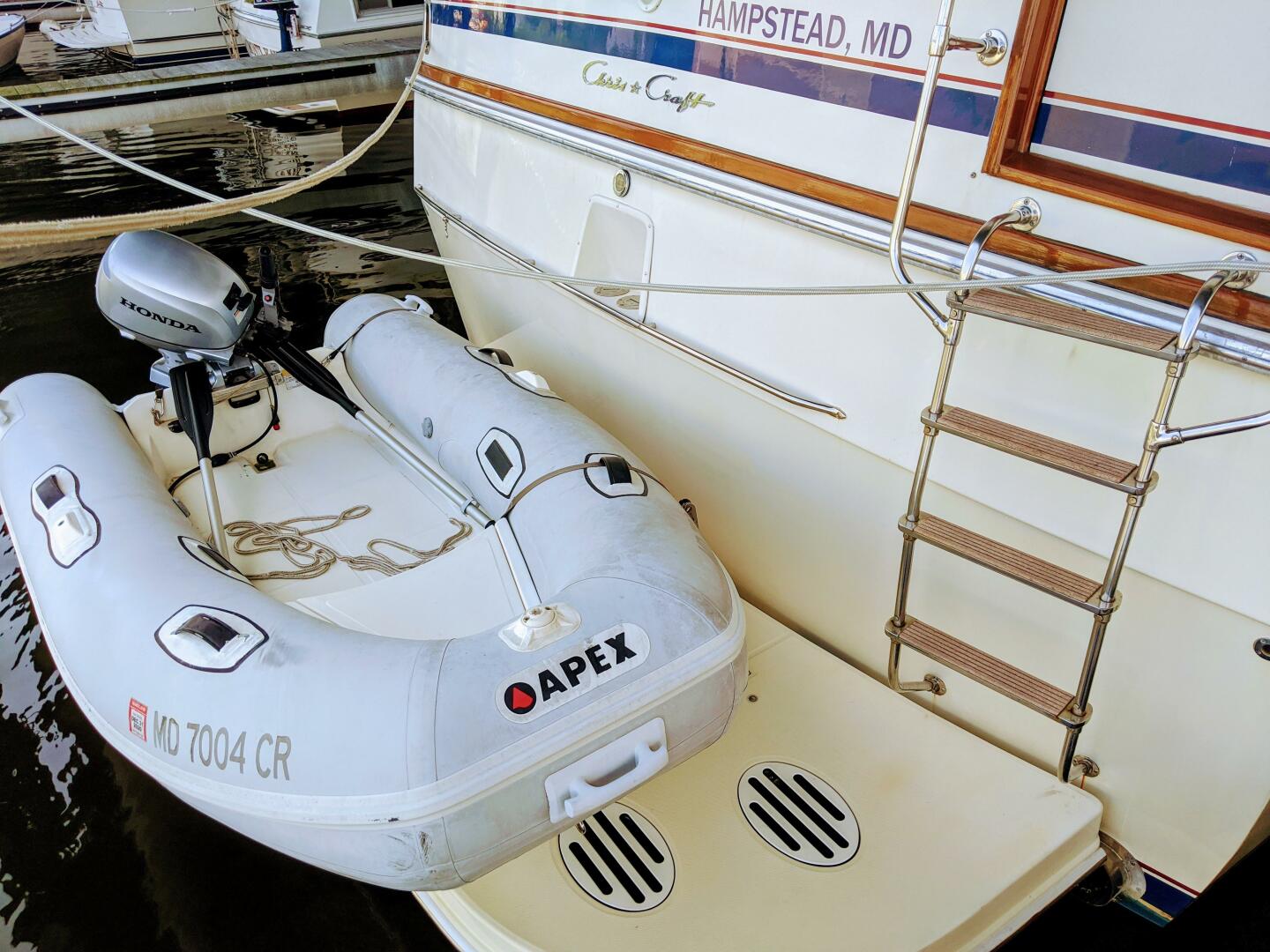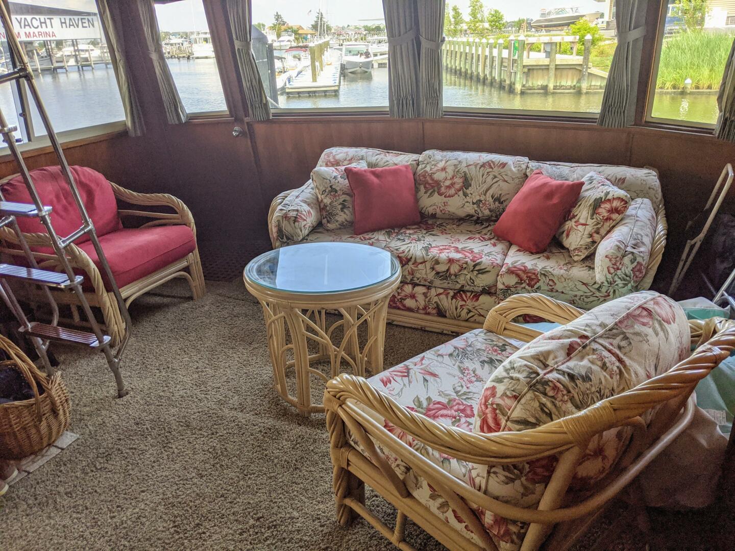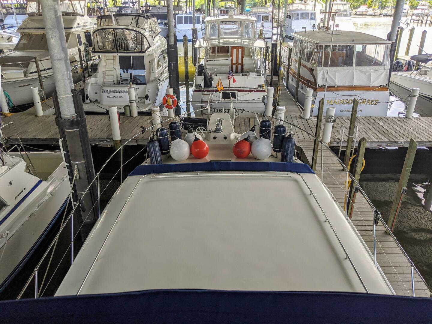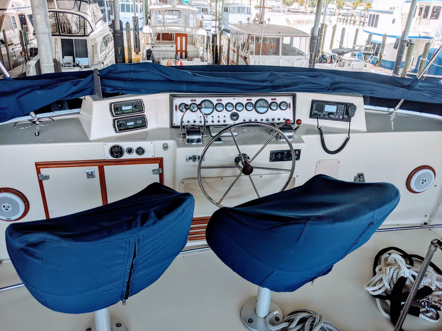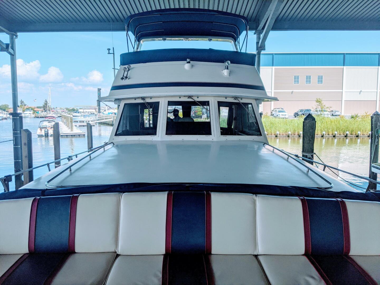 Beautifully maintained 46 Chris Craft Constellation is a tremendous motoryacht for extended periods on the water. She has generous living space with good handling characteristics, with lots of extra equipment. GREAT LOOP FRIENDLY! The arch is hinged to lower.