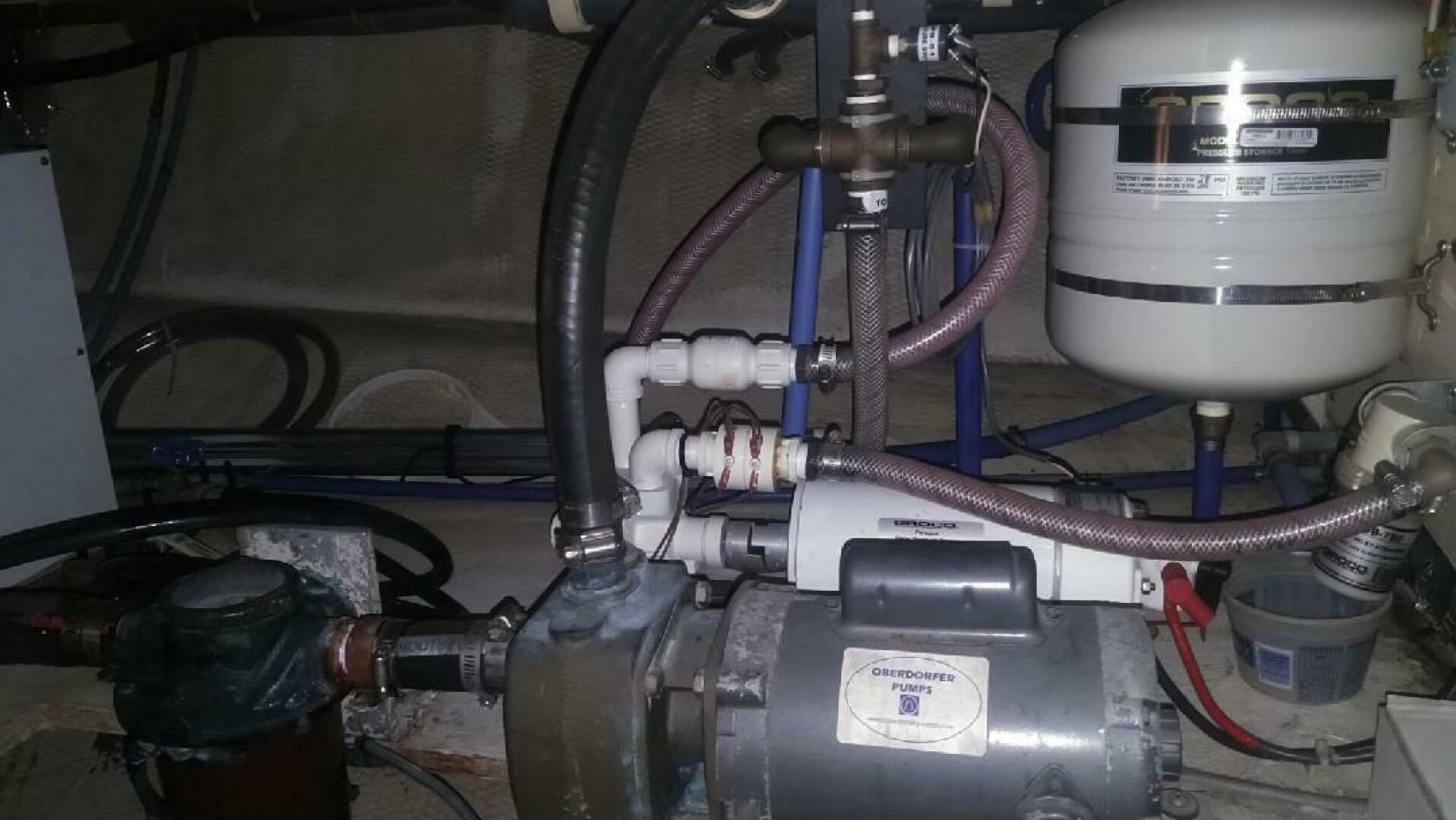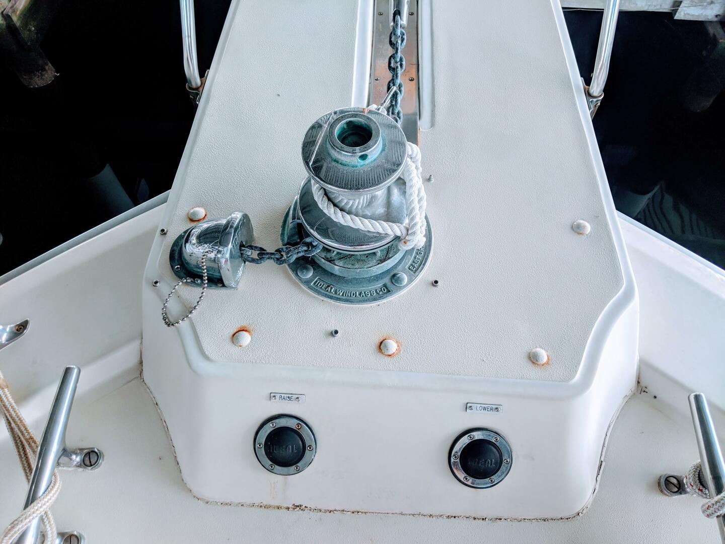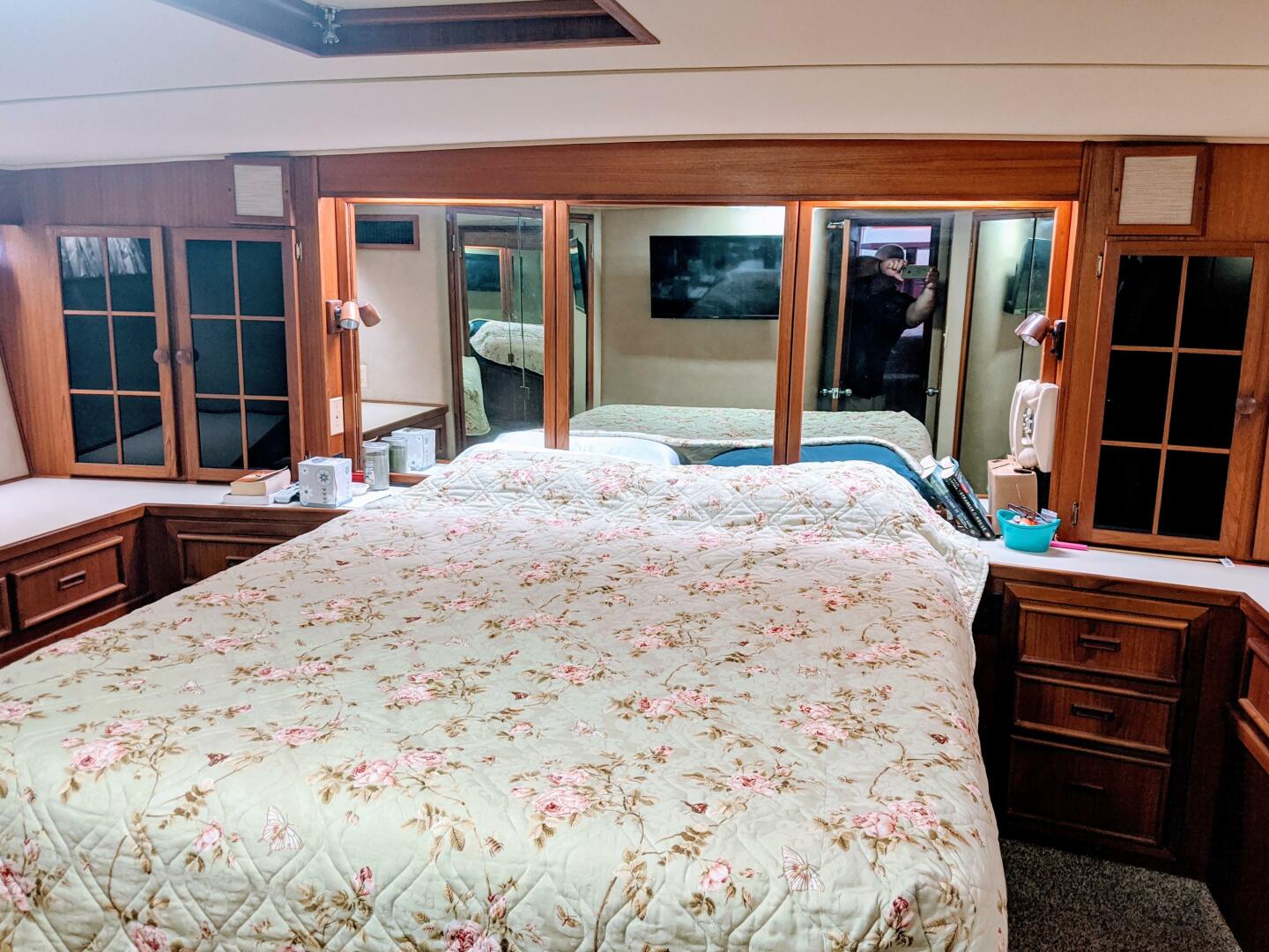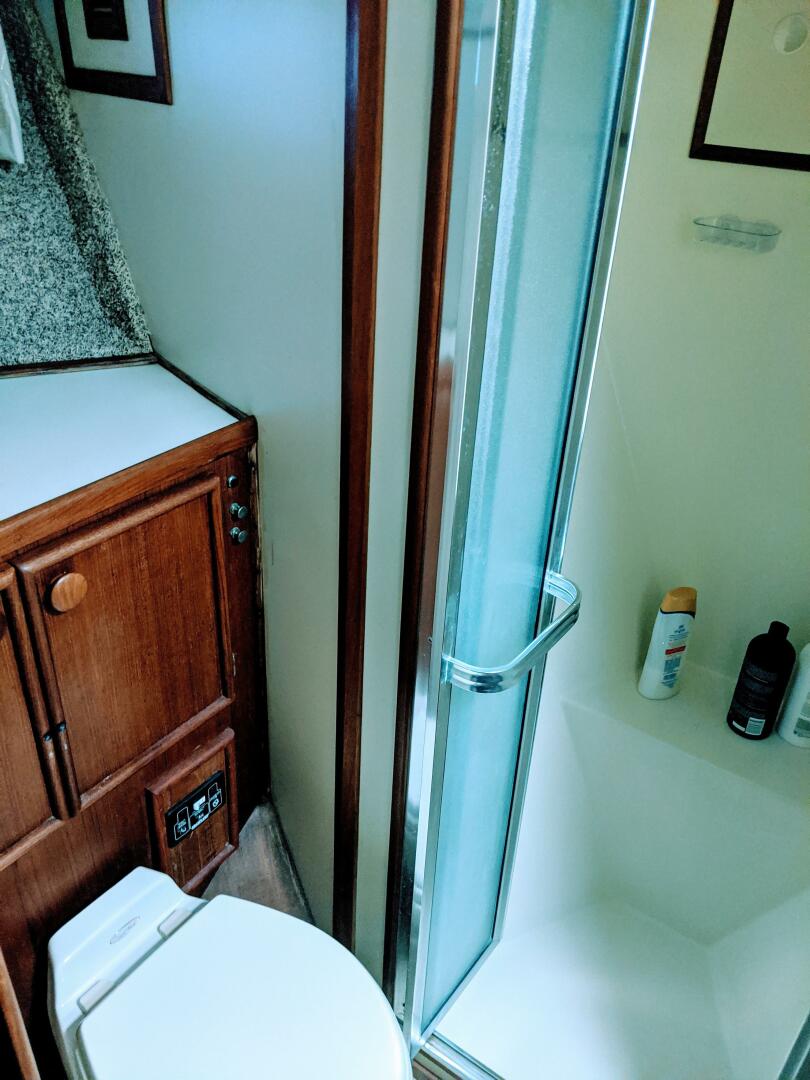 Access to the flybridge is gained by a ladder in upper salon. Down four steps to port is the main salon. Down three steps aft from the main salon is an office/third stateroom to starboard. The master/guest head is to port with a proper stall shower. Master stateroom is aft and full beam. Queen centerline berth with drawers located on either side. Just forward of the salon on the port side you will find the built-in "L shaped" dinette. The galley is immediately to starboard (down two steps). The forward stateroom has two oversized berths (upper/lower bunks) with head/shower in the forepeak.