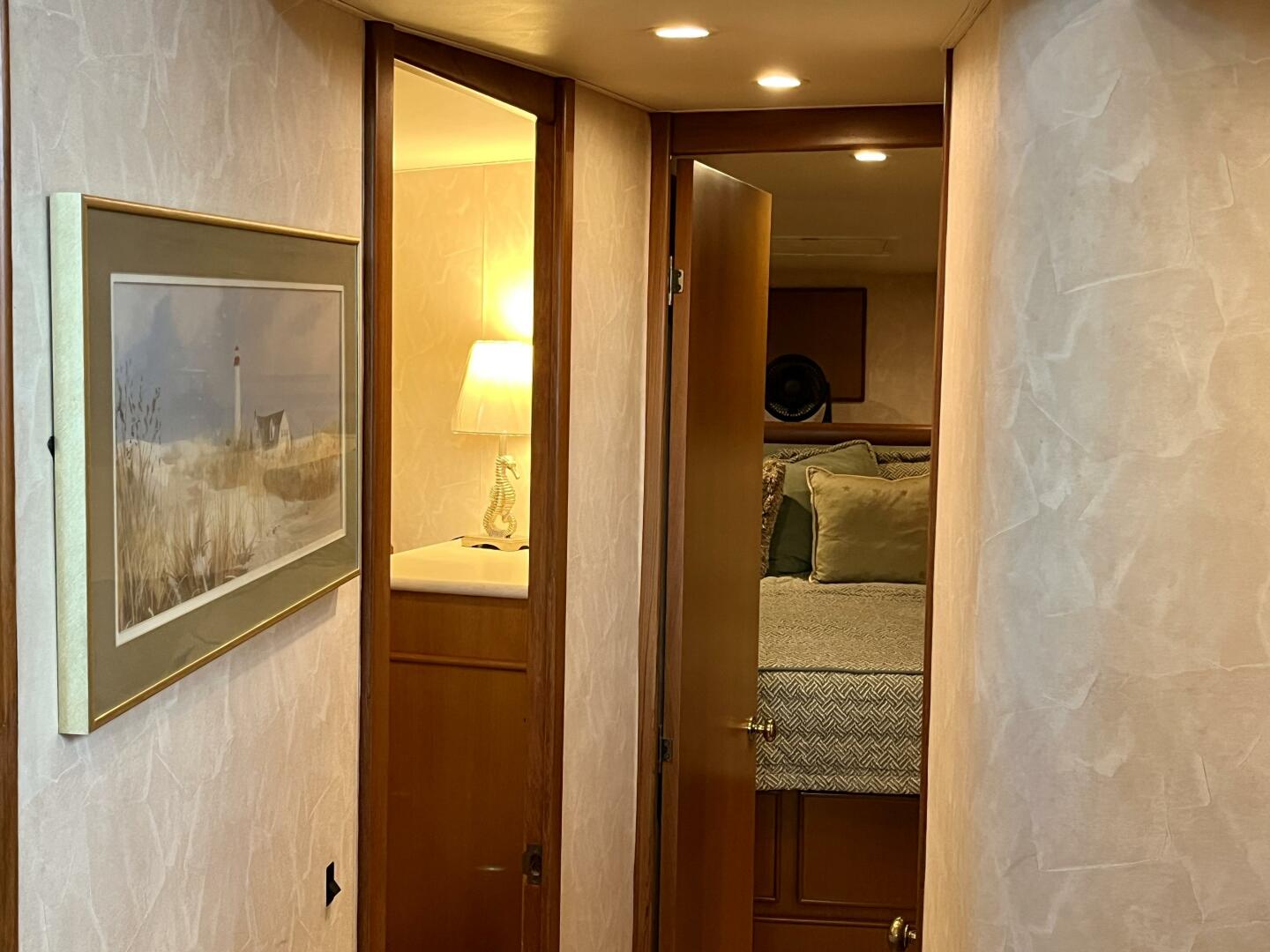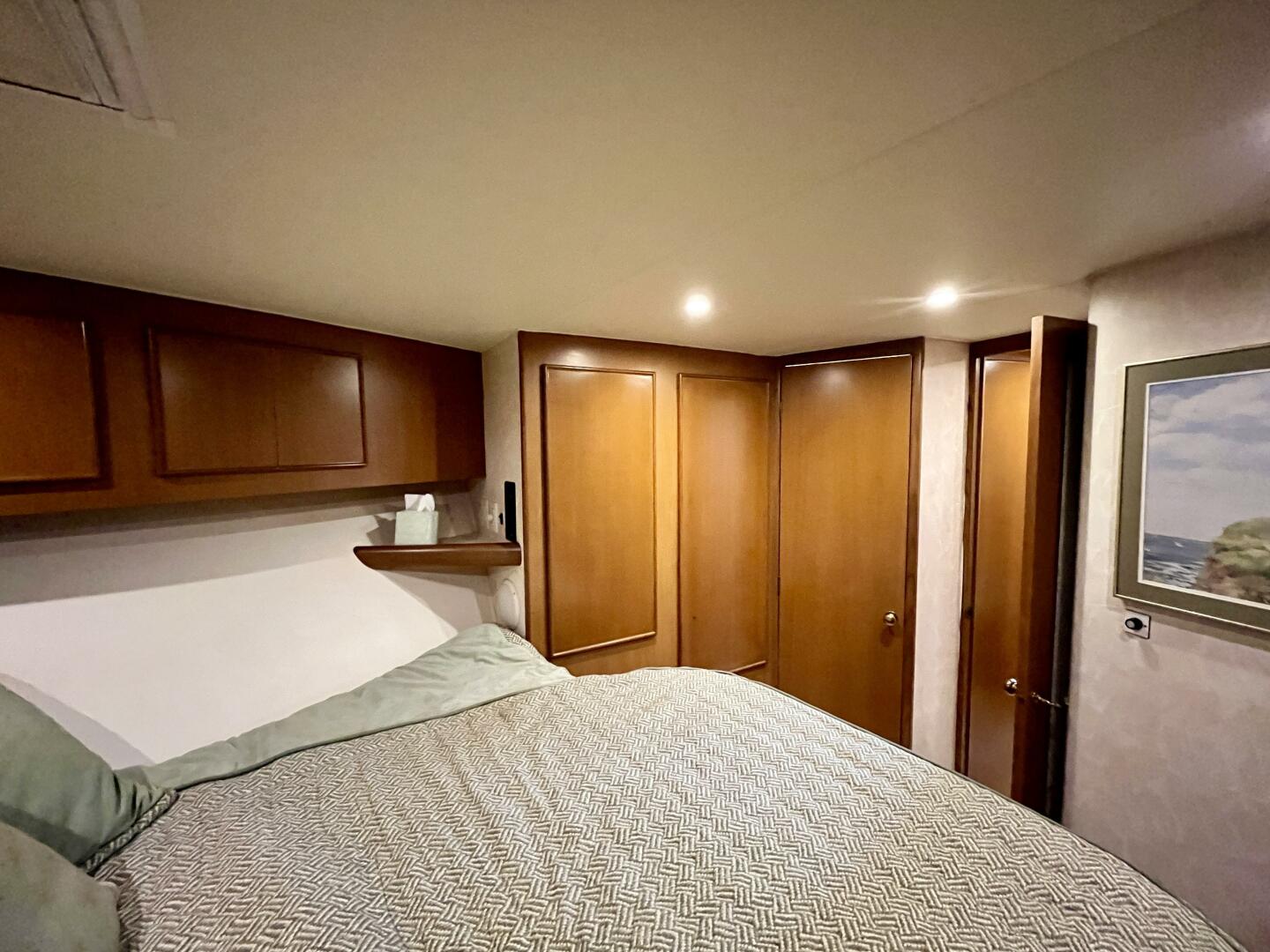 - Master stateroom forward — queen berth, cedar-lined closets