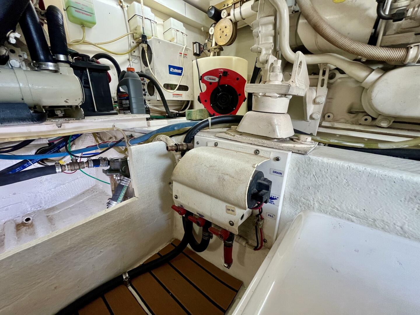 - Mechanical: Racor filtration/turbine fuel polishing, Hynautic hydraulic steering, Jabsco electric water pumps, Sea Fire system, battery charger, engine room fans