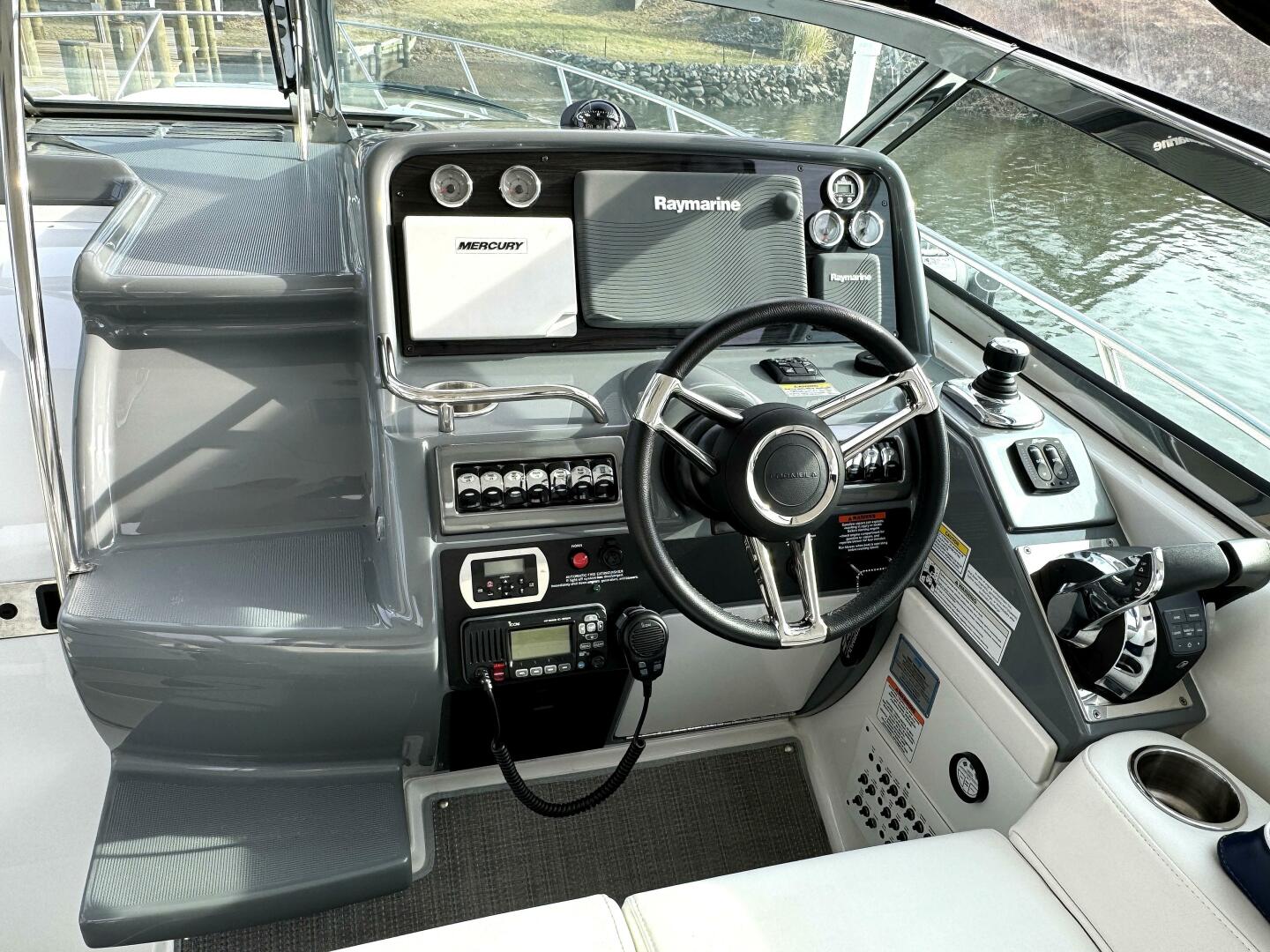 Navigate with ease using the Raymarine E127 12” Chartplotter, Vessel View 7, and a suite of electronic equipment designed for safety and convenience. Enjoy your favorite music with a high-end Clarion stereo system and marine-grade speakers throughout the cockpit and cabin.