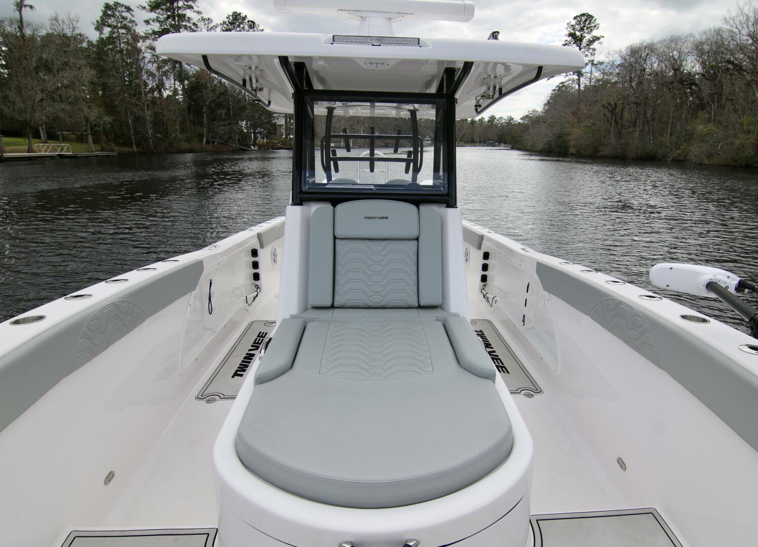 This 2024 Twin Vee 280 GFX CC is a highly equipped offshore-ready catamaran offering exceptional stability, efficiency, and performance. With only 72 hours, the twin Mercury 300s provide like-new reliability and power. The combination of Garmin electronics with open array radar, Optimus steering, and a full 36-volt Minn Kota trolling system with lithium power and Stealth charger makes this vessel tournament-capable and cruise-ready. Outriggers mounted on the hardtop further enhance offshore fishing capability, while the clean white hull paired with grey upholstery delivers a sharp, modern look. Call us today to schedule a showing !