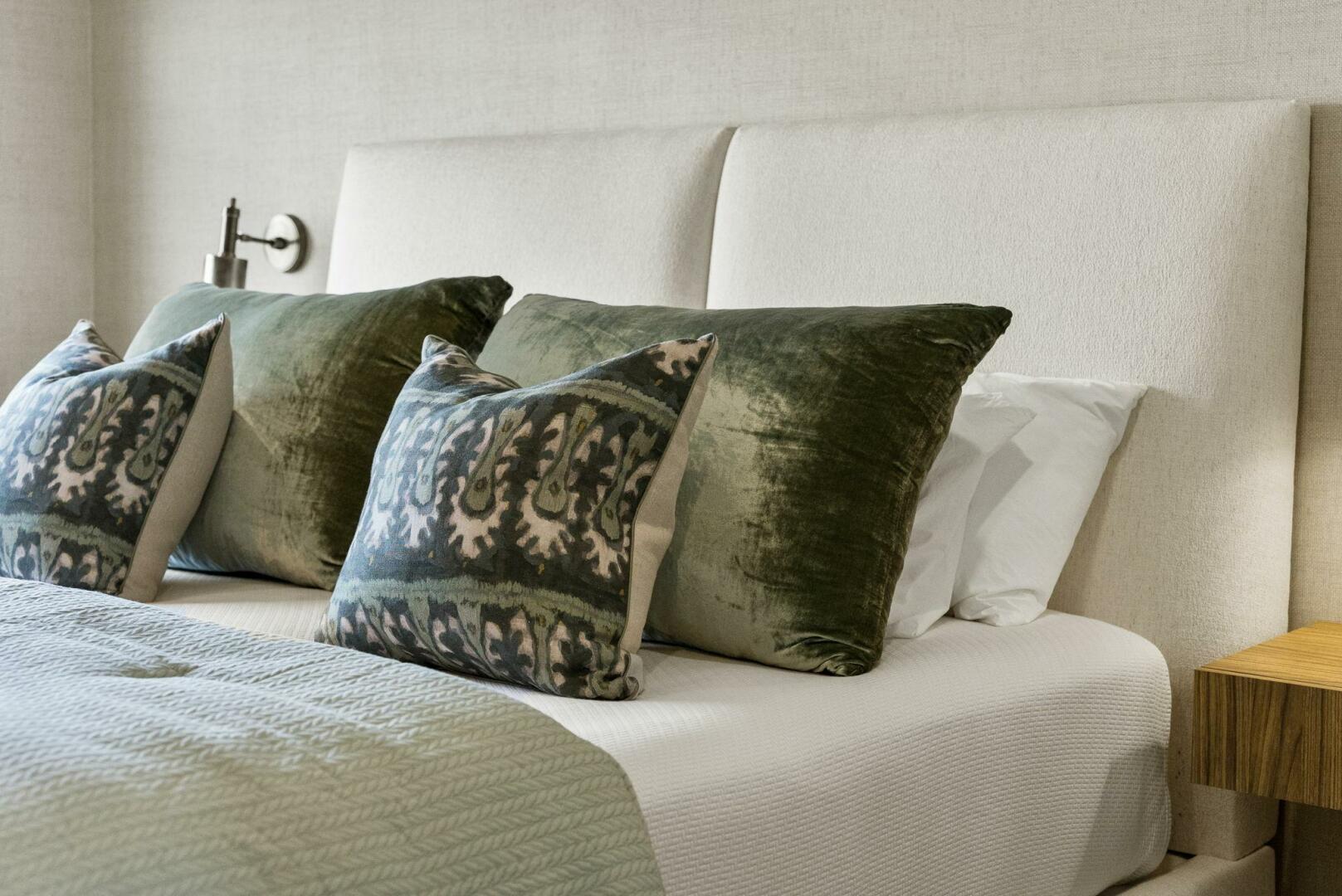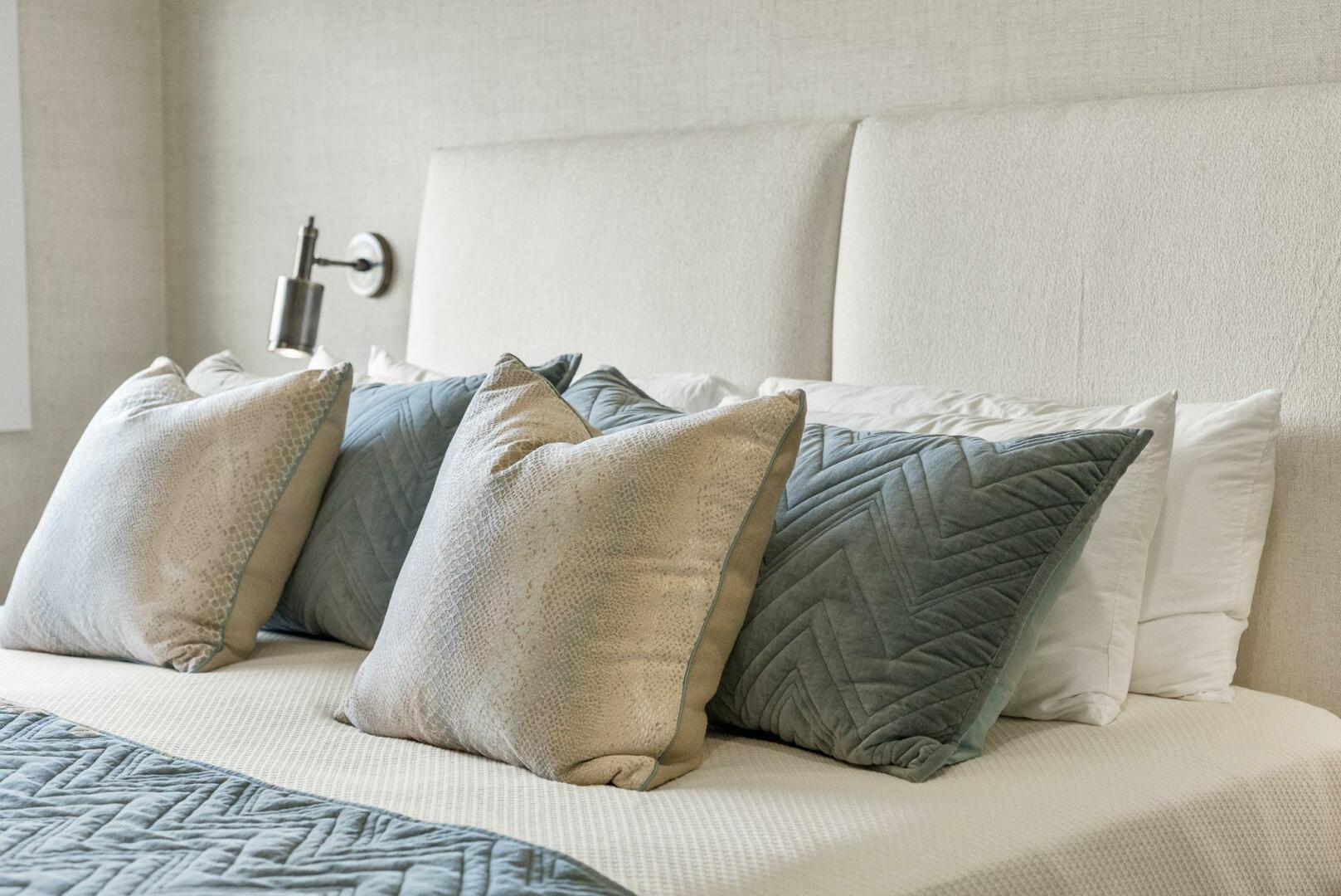 Private quarters are thoughtfully arranged for serene, hotel-like retreats. The vessel features an elegant owner's stateroom with generous proportions, an oversized closet featuring custom built-ins, and direct access to a luxurious en suite bathroom. Complementing this are four additional king-sized bedrooms, each appointed with premium bedding and finishes, and each boasting its own private en suite bathroom for complete guest privacy and convenience. These accommodations comfortably sleep up to 10+ in king-bed configurations, with high-end interior design by Rita Durio and Associates ensuring sophisticated, resort-level elegance throughout.
