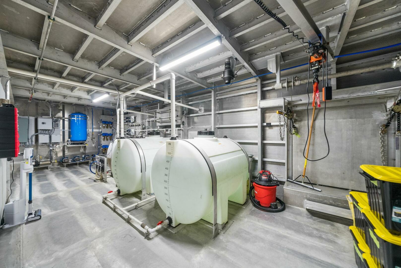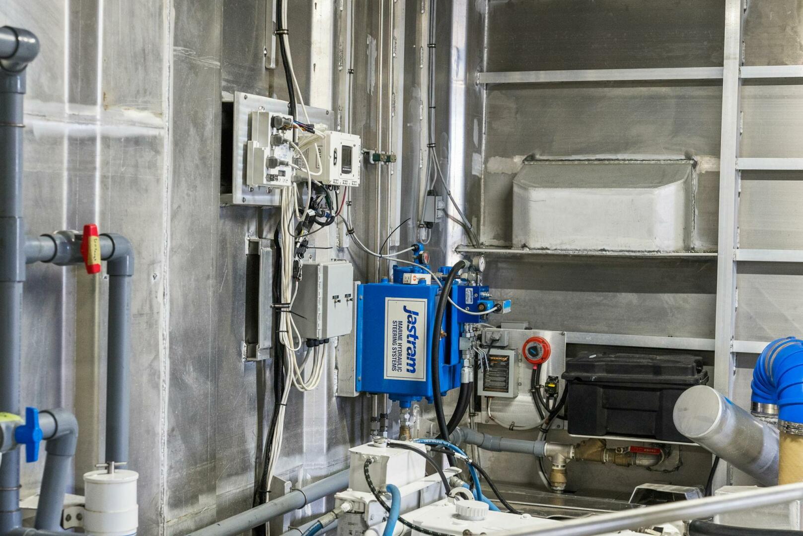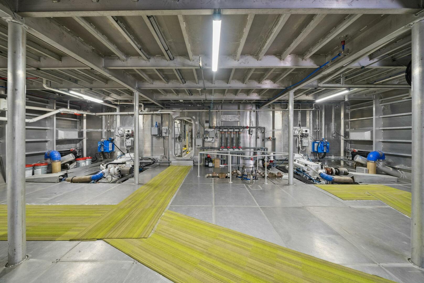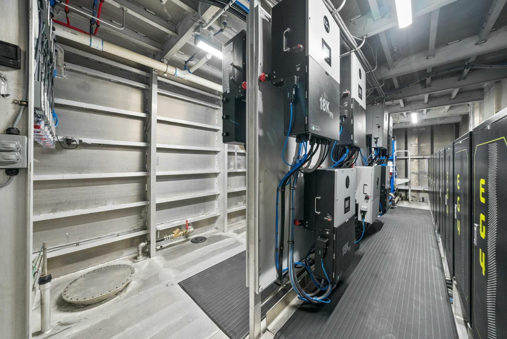 Below decks, the expansive subdeck area (approximately 4,200 sq ft within the 12-ft depth) houses the vessel's advanced mechanical and utility systems. This includes the core of the off-grid power ecosystem—over 300 kWh of lithium iron phosphate (LFP) battery storage, inverters, and supporting infrastructure for the 108 solar panels—along with water purification, HVAC components, additional storage (including freezers for long-term provisioning), two laundry rooms, and essential mechanical equipment. Engineered for reliability and accessibility, these lower spaces ensure quiet, efficient operation while maintaining the vessel's impressive energy independence and low-maintenance aluminum construction.