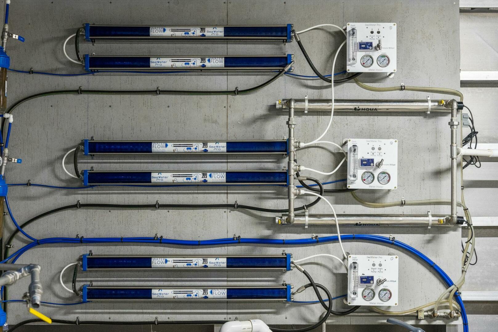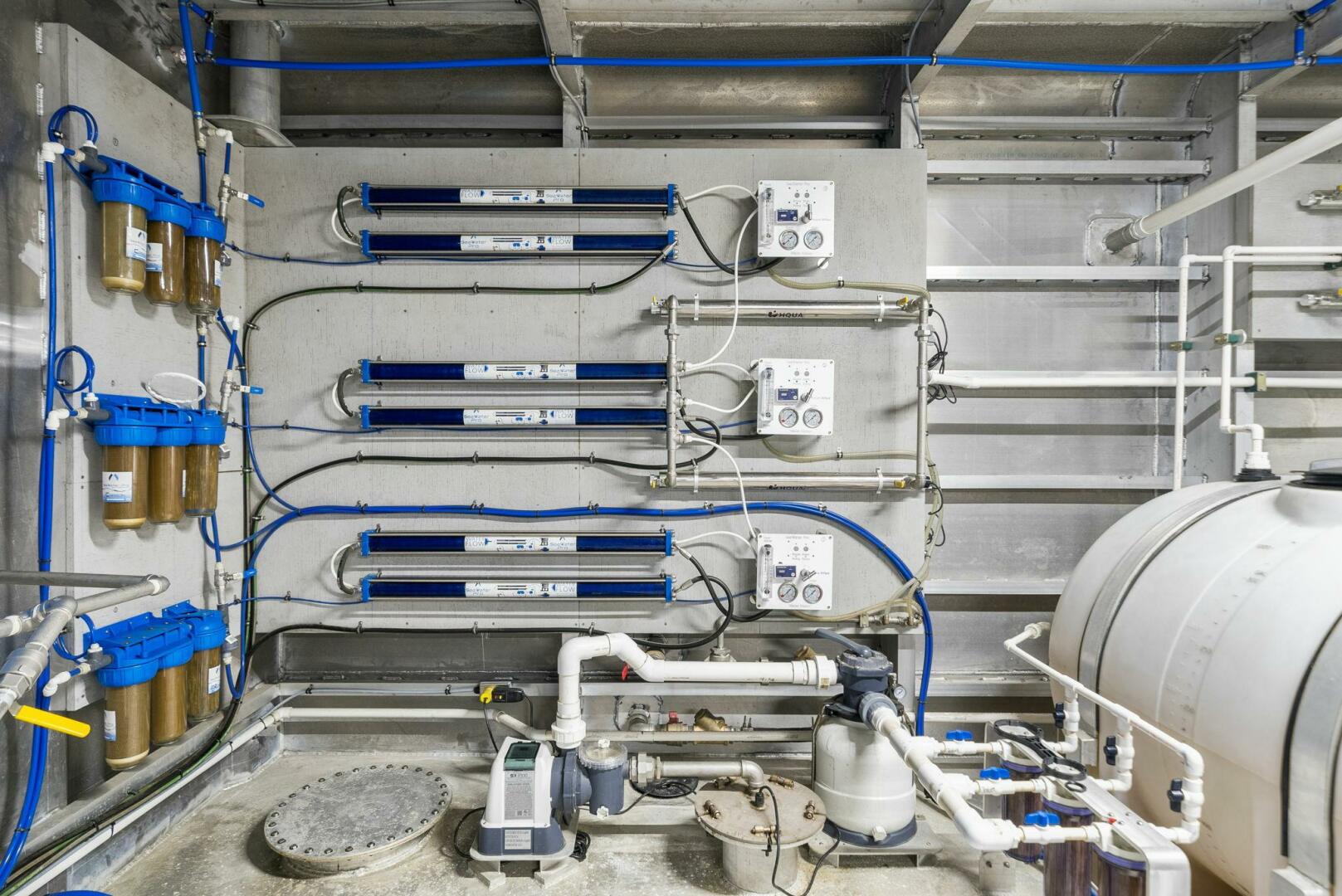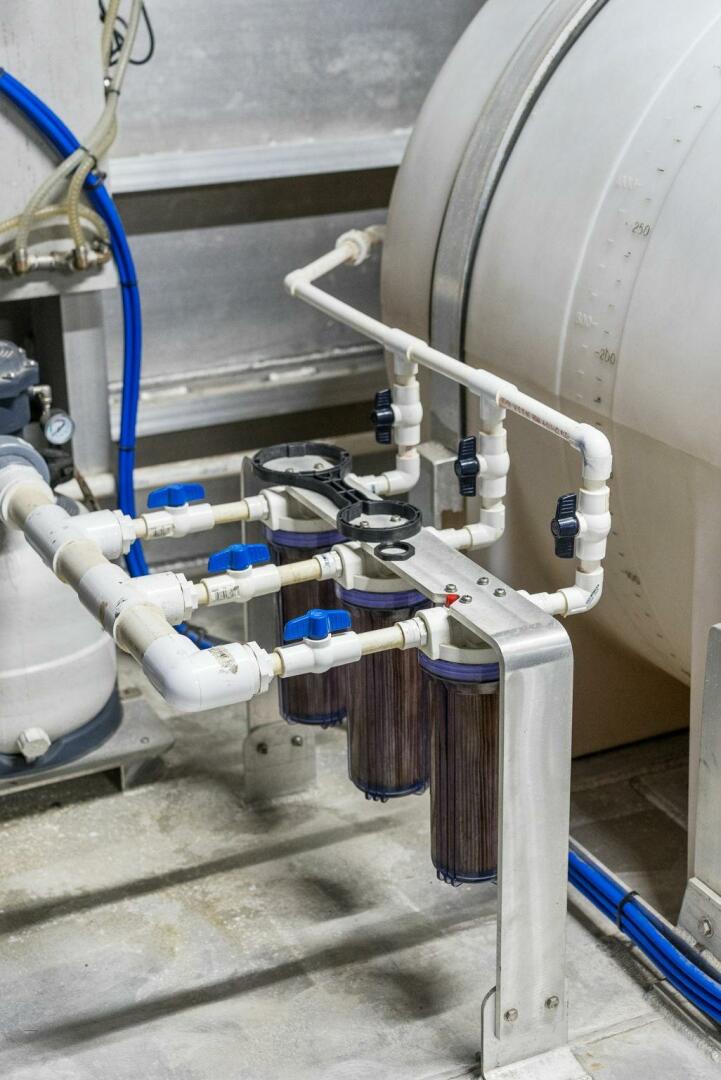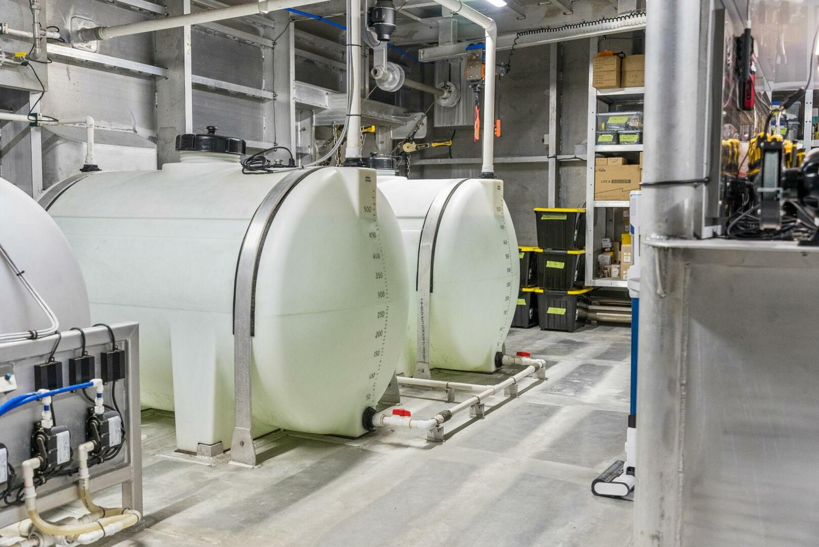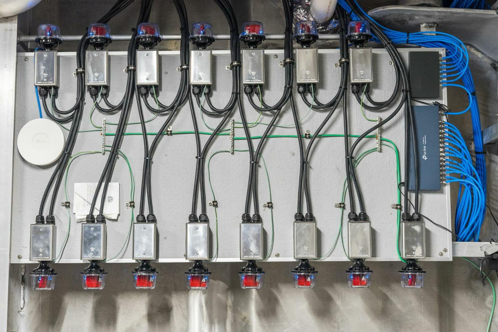 Below decks, the expansive subdeck area (approximately 4,200 sq ft within the 12-ft depth) houses the vessel's advanced mechanical and utility systems. This includes the core of the off-grid power ecosystem—over 300 kWh of lithium iron phosphate (LFP) battery storage, inverters, and supporting infrastructure for the 108 solar panels—along with water purification, HVAC components, additional storage (including freezers for long-term provisioning), two laundry rooms, and essential mechanical equipment. Engineered for reliability and accessibility, these lower spaces ensure quiet, efficient operation while maintaining the vessel's impressive energy independence and low-maintenance aluminum construction.