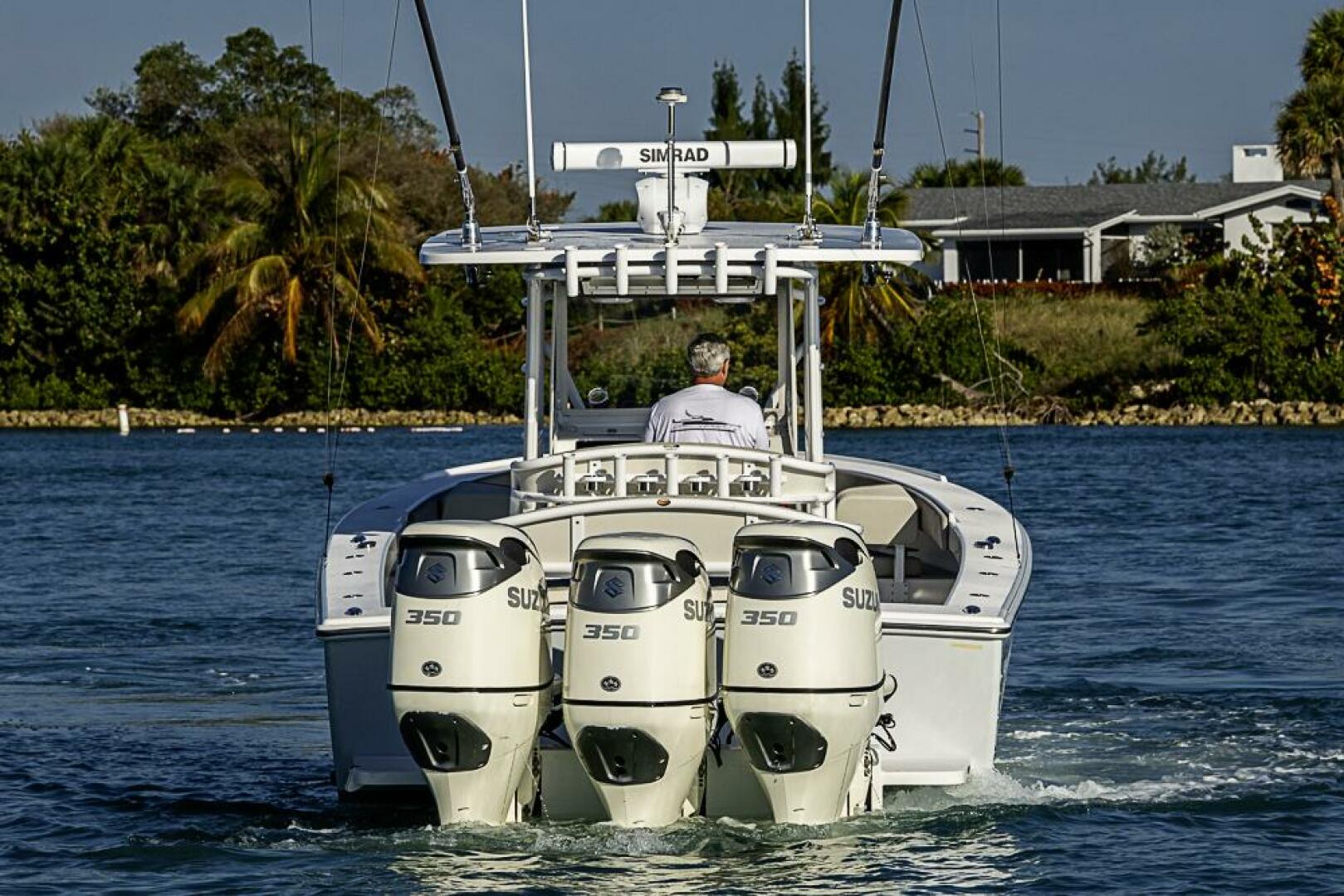 Our dreams came to life as Willard Albury spent time finessing plugs until she was perfect enough to build. Nobody beats this bottom for all around ride, handling and stability. With triple 350’s, the 33 is all an adventurer could ask for. Boasting an extended waterline and plenty of buoyancy, she feels like she’s floating on top of the swells. Stability, crisp handling, and a tight turning radius are a given. Spearing waves…a thing of the past. This transom design makes for quick water egress and the ability to work fish around the engines. More capable than our renowned 23’, she can take you literally anywhere. From far away oceans, to that real tight slip you hate squeezing into, she will exceed your expectations.