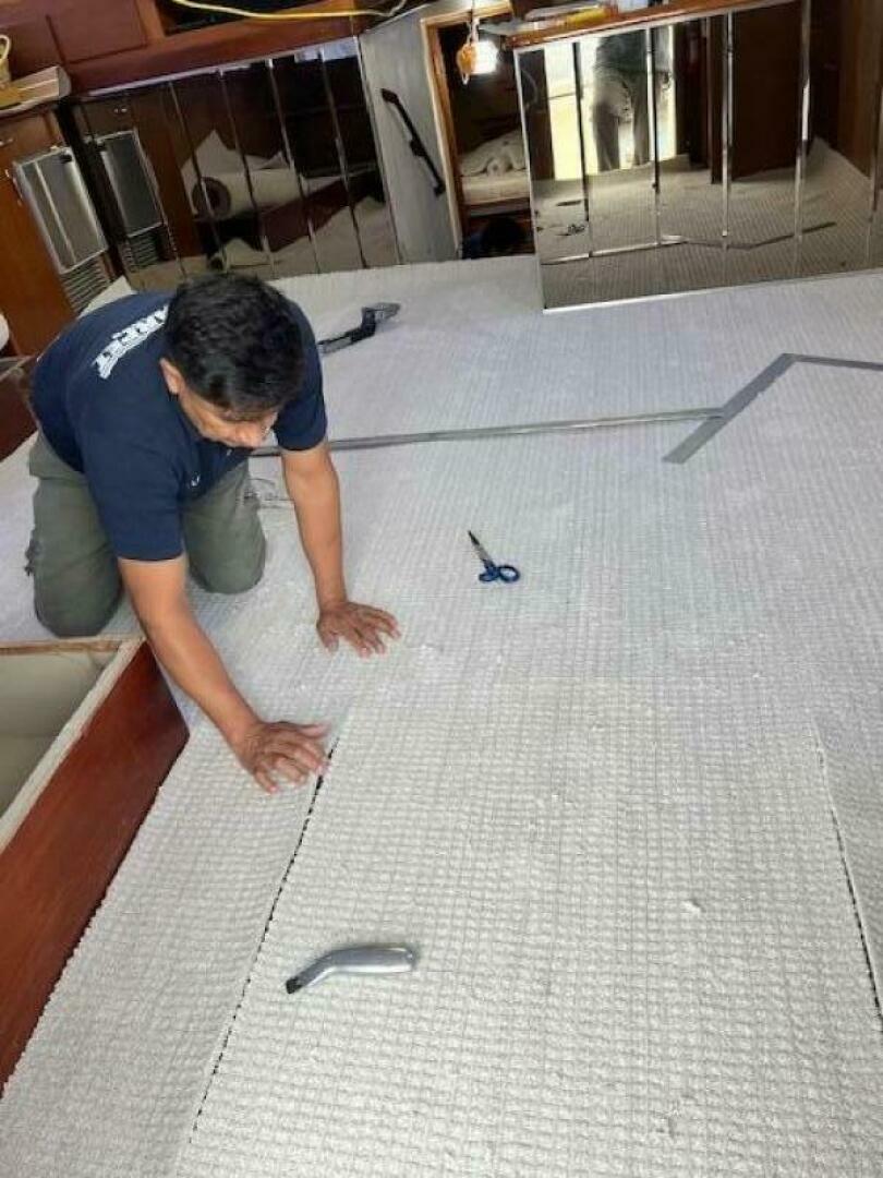 - Full deck refit: removed old teak, recore with Coosa board, gelcoat, synthetic teak finish