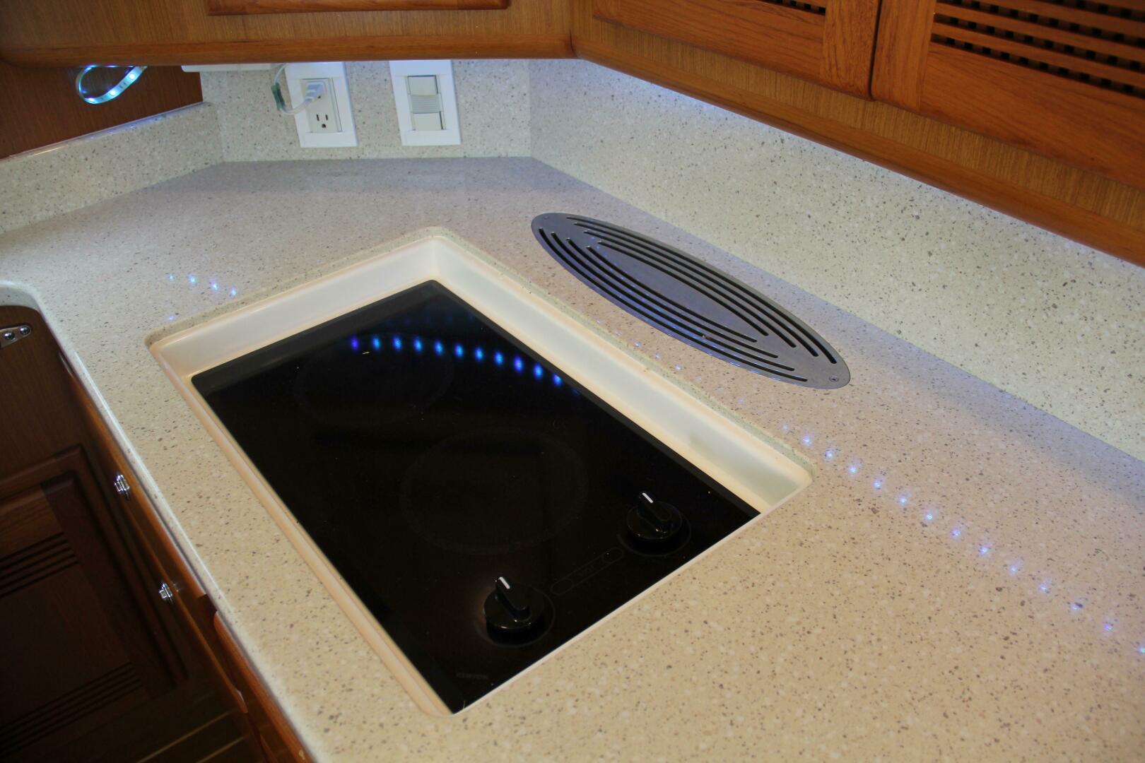 - Two-burner electric cooktop with downdraft