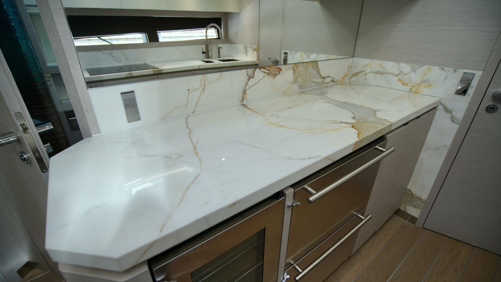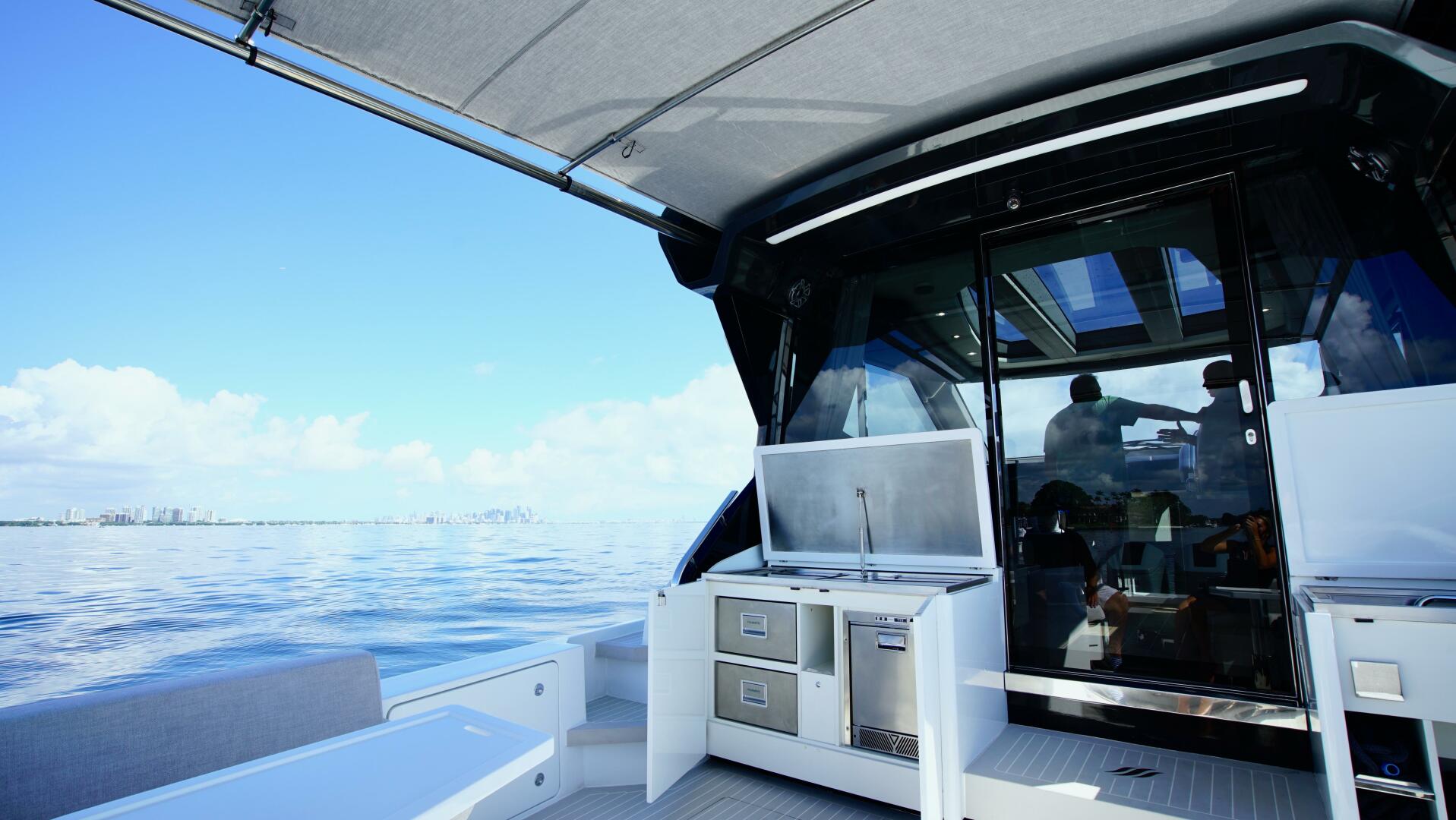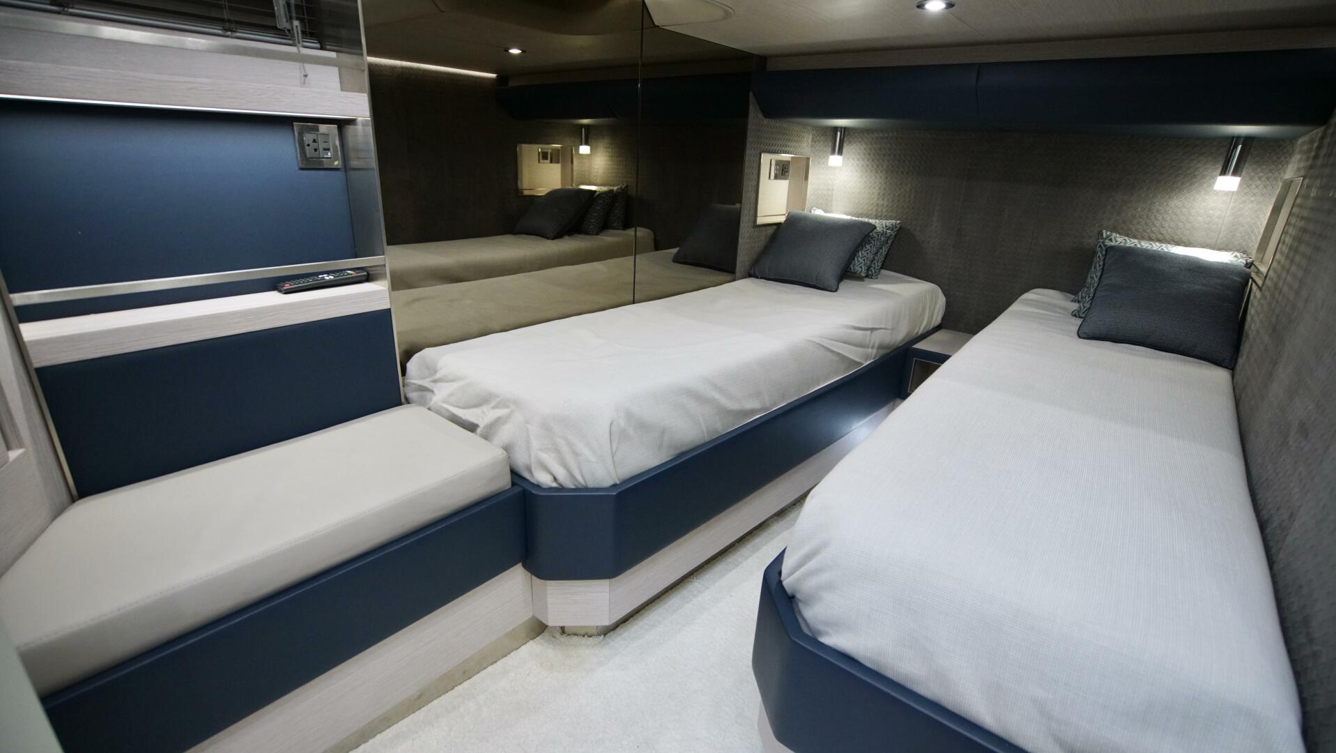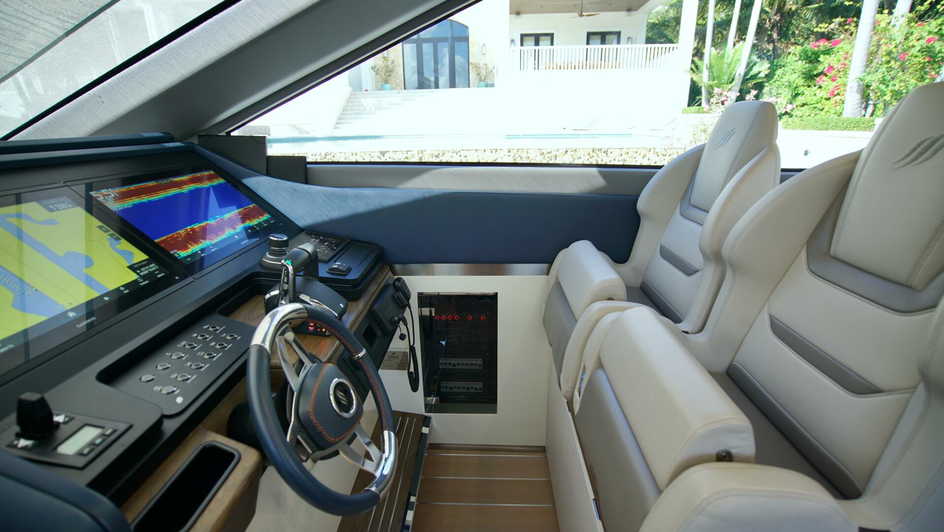 This vessel is in new condition, fully equipped, and ready for immediate delivery. Powered by quad Mercury 600 HP V12 Verado outboards with only 80 hours, she delivers breathtaking performance combined with remarkable efficiency and quiet operation.