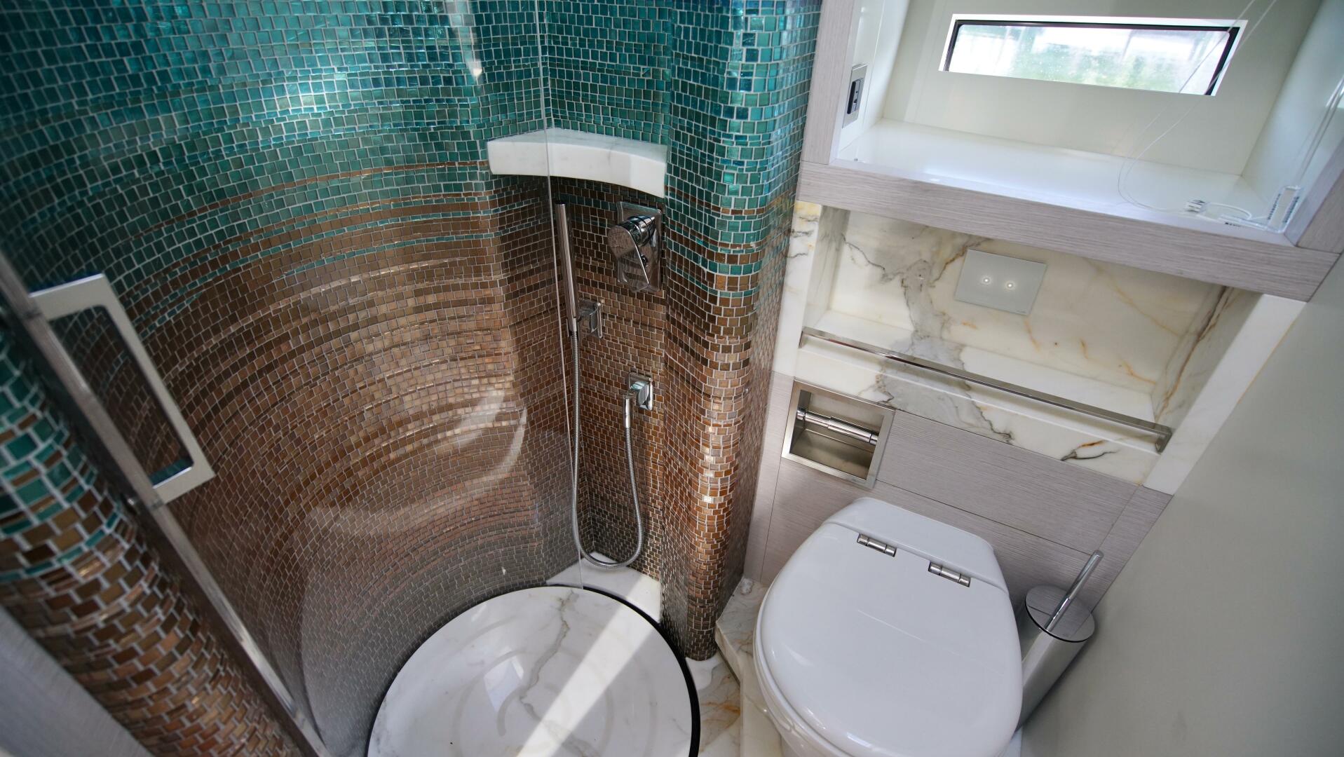 • Full-beam Owner’s Suite amidships with en-suite bathroom