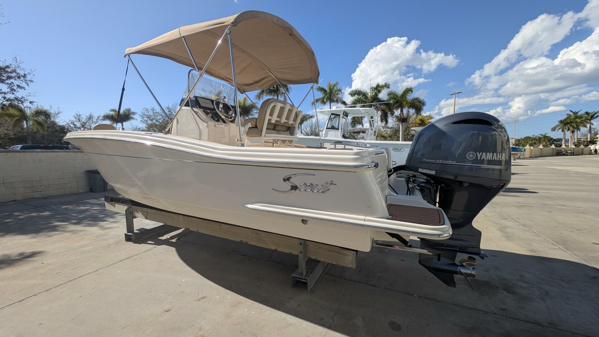 2019 Scout 215 XSF Rack Stored Indoors And It Shows! Upholstery And Gelcoat Is In Pristine Condition! ONLY 175 Hours! Outfitted with Lenco trim tabs, a bimini top for maximum shade, a Garmin Chartplotter providing dependable navigation and sonar functionality.