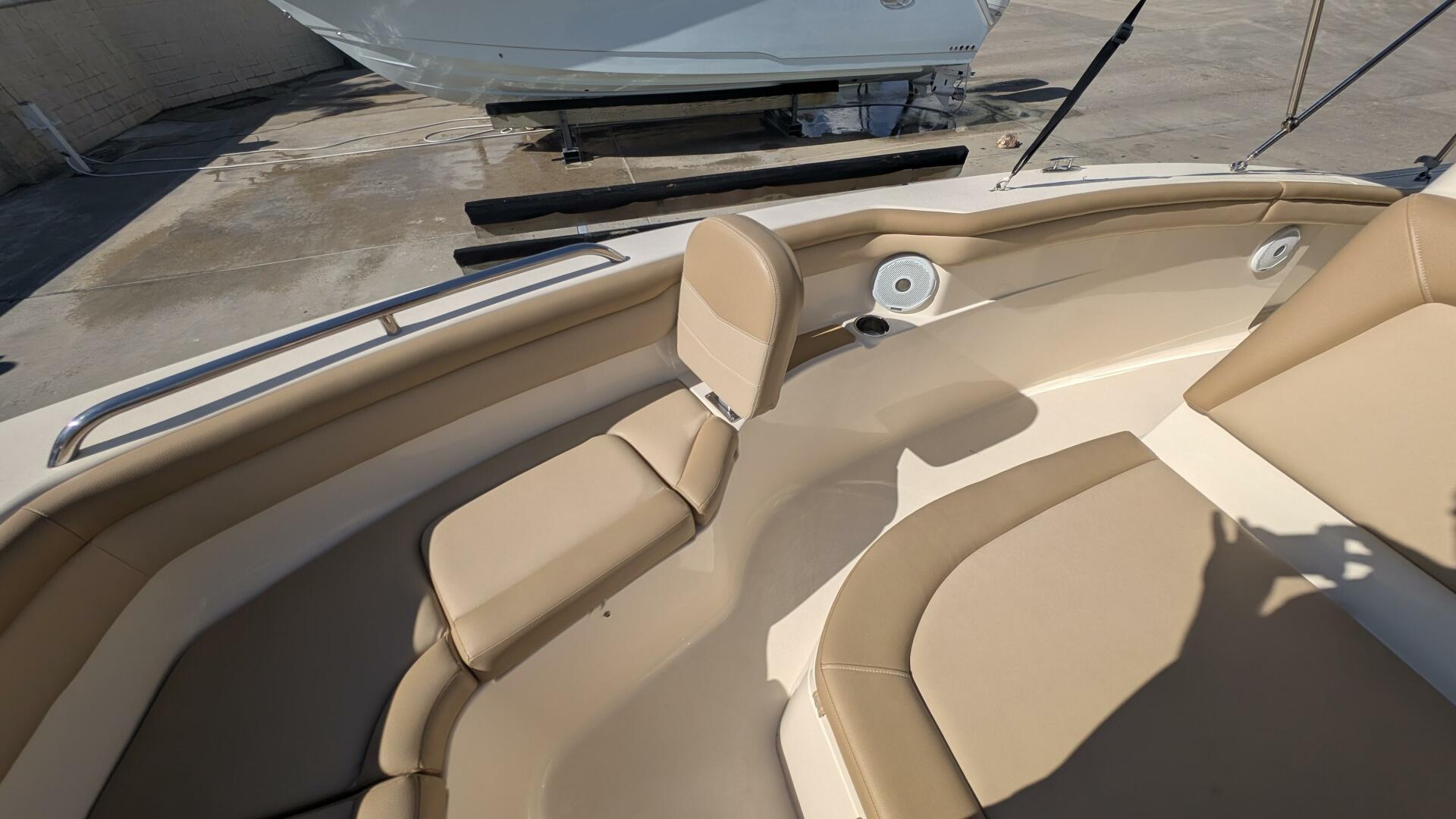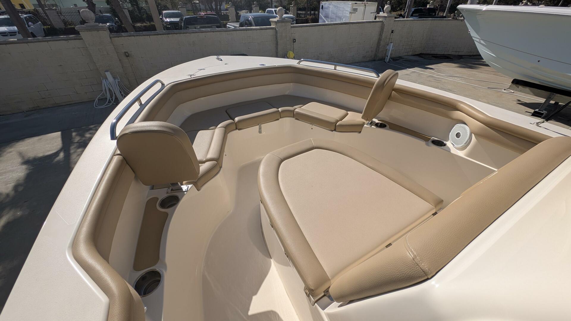 The 215 XSF is built on Scout’s revolutionary fuel saving NuV3 hull design, while the deck offers ample standard amenities for everything from serious fishing to comfort cruising. Built with 100% hand-laid fiberglass, the boat boasts a wide comfortable beam of 8’ 6” with an overall length of 21’ 6”. A notable standard feature onboard the 215 includes not only the forward seating in the bow, but also a forward sun lounge/coffin box complete with a cushion.