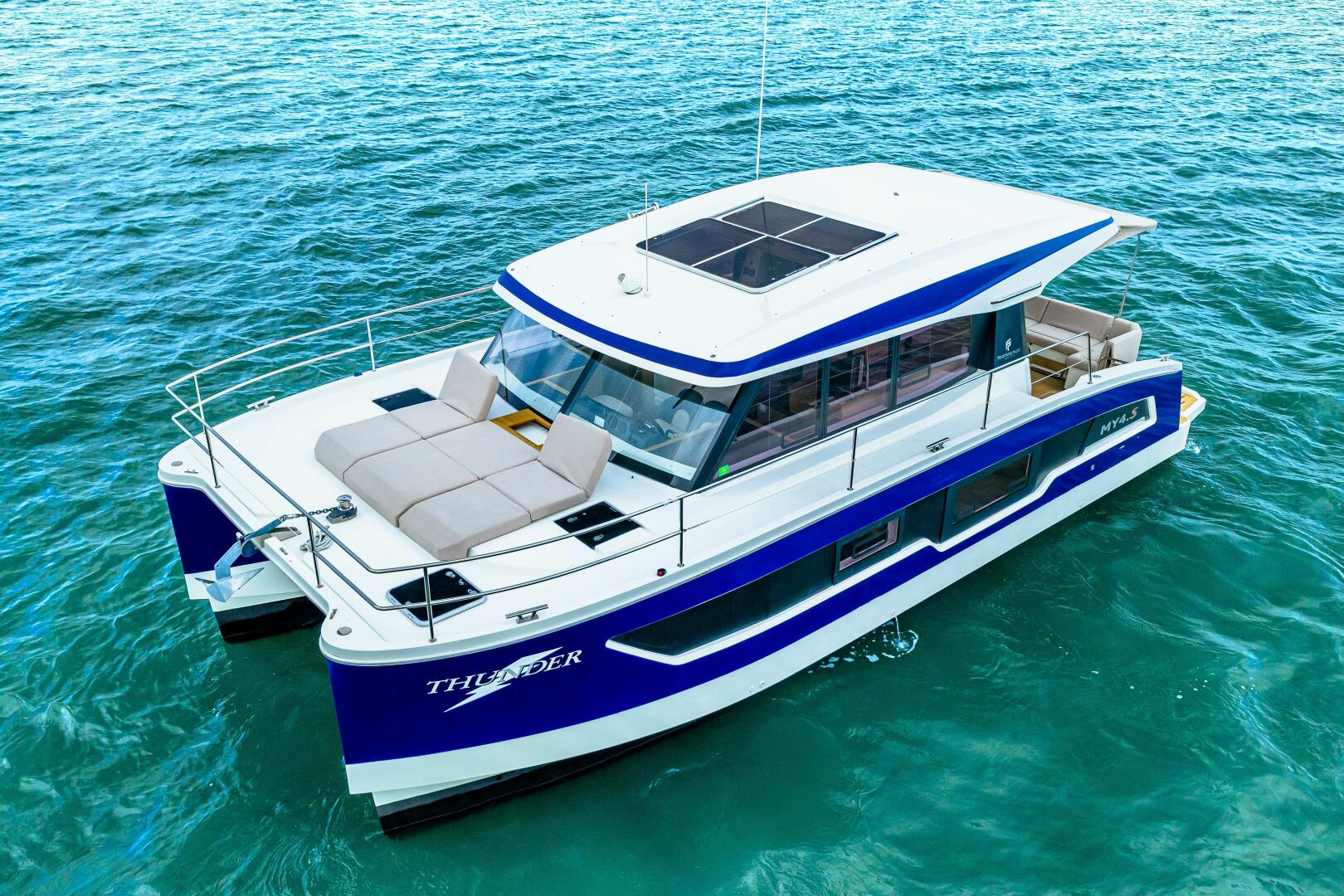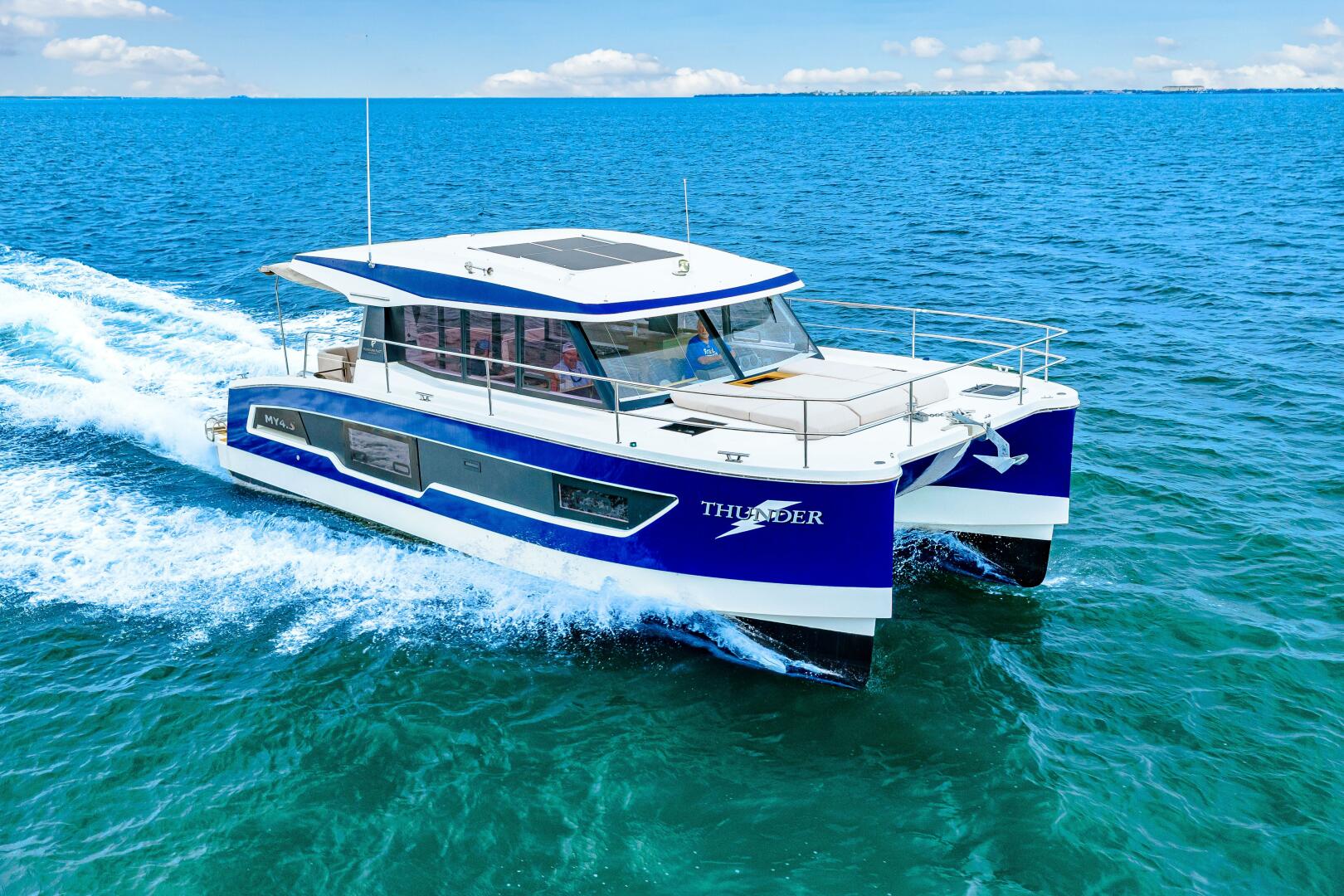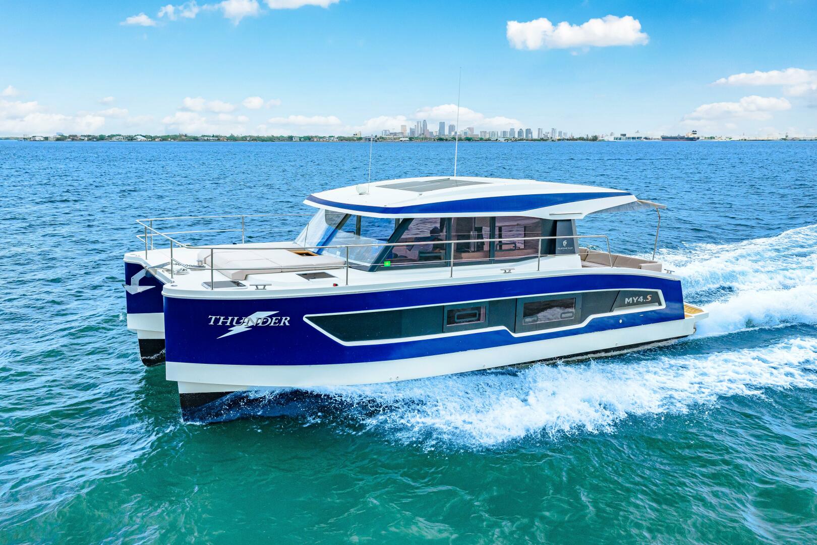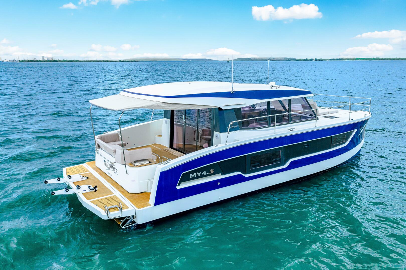 Meet “Thunder,” a pristine 2021 Fountaine Pajot MY4.S Maestro (Owner’s Version) that delivers exceptional performance, comfort, and efficiency in a sleek power catamaran design. Lift-kept since new, she shows beautifully. Her Hydraulic Tender Lift, and running gear look new and they have been protected from the elements. Her low-hour (140hrs) Yanmar diesel engines provide outstanding fuel efficiency, quiet cruising, and long-range capability—perfect for extended adventures or effortless day trips. The MY4.S layout offers expansive living spaces, panoramic views, and seamless indoor-outdoor flow, making every voyage feel first class. Whether you’re island hopping or entertaining dockside, “Thunder” stands out as a rare opportunity to own a like-new vessel that blends luxury, reliability, and smart operating economy in one impressive package.