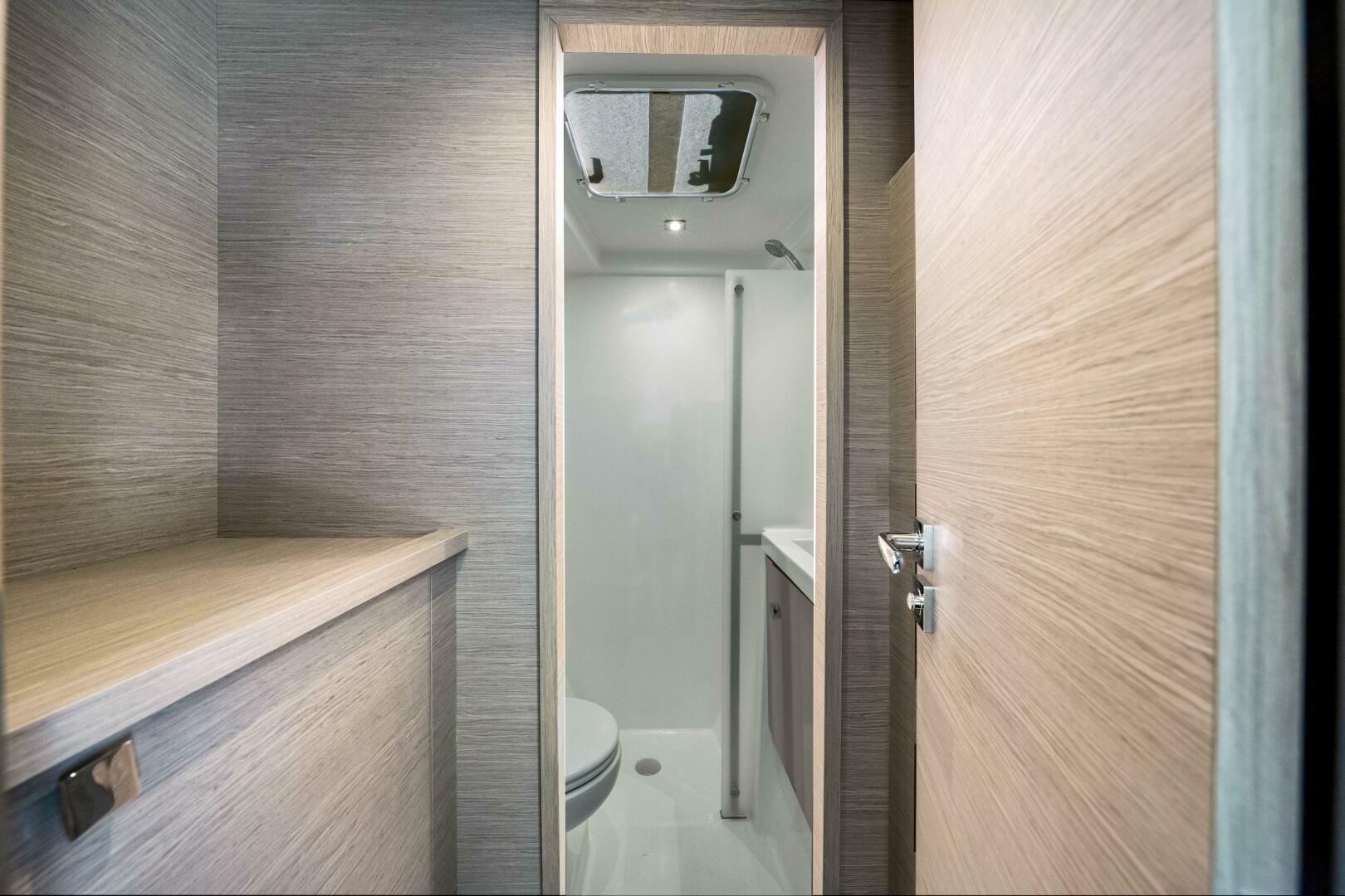 "Thunder" 2021 Fountaine Pajot MY4.S Maestro 3 cabin / 2 head owner’s layout.