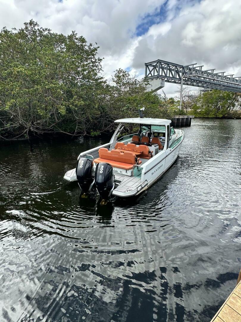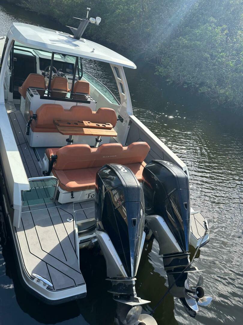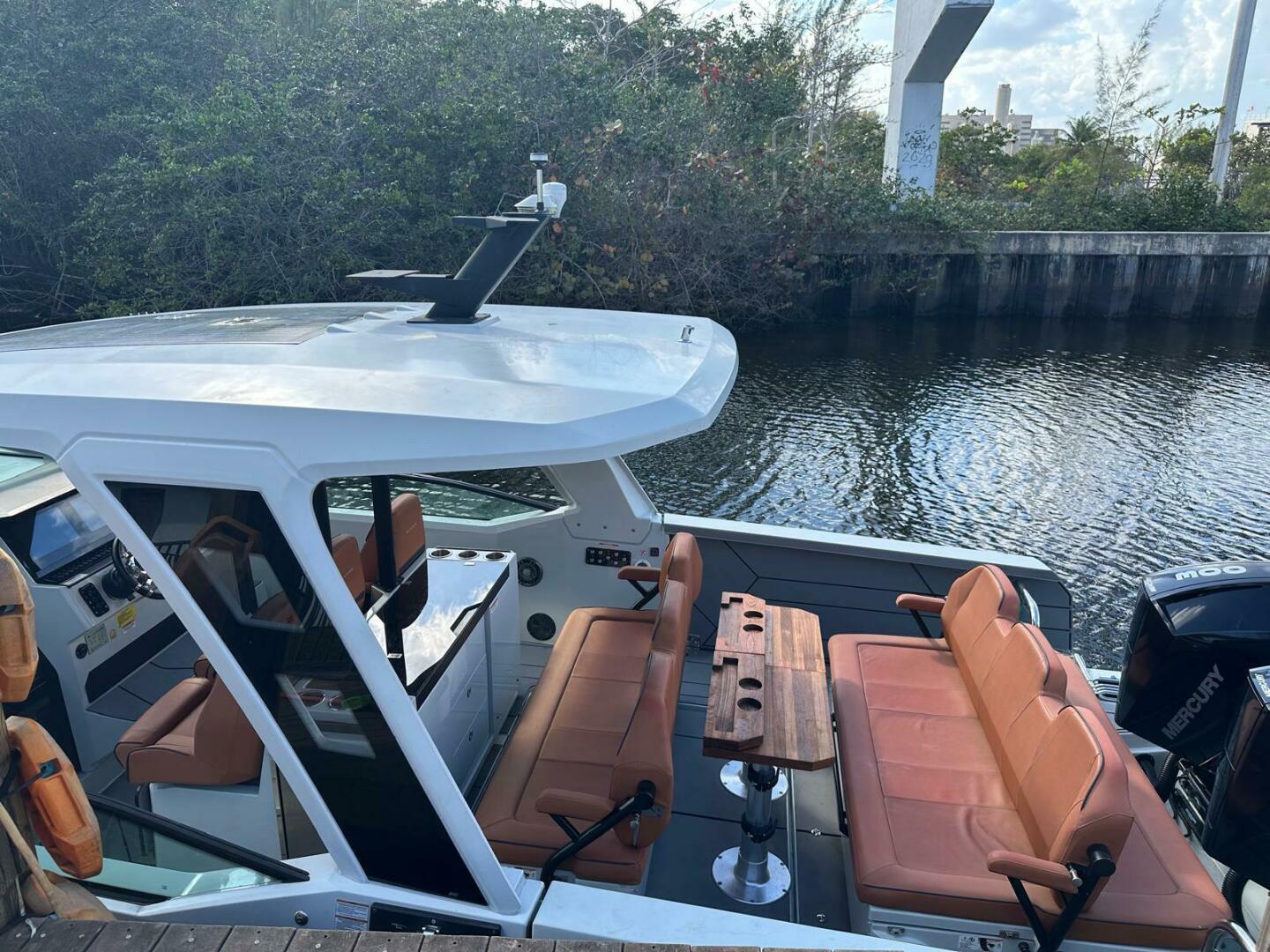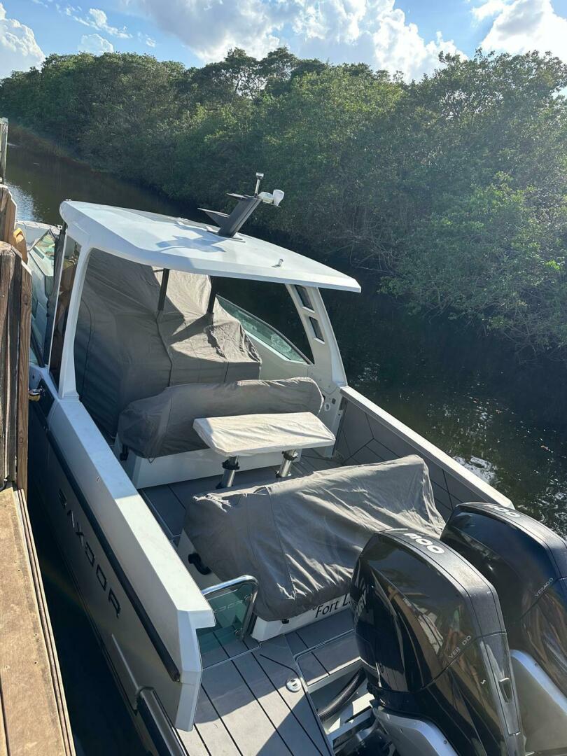 Bow seat mooring cover, cockpit cover, hard top, rear seat mooring covers, convertible rear deck, bow thruster, twin Simrad touch screens, 900 hours, anchor windlass, seating for 9 in the cockpit, bottom painted. Located in Ft. Lauderdale FL.