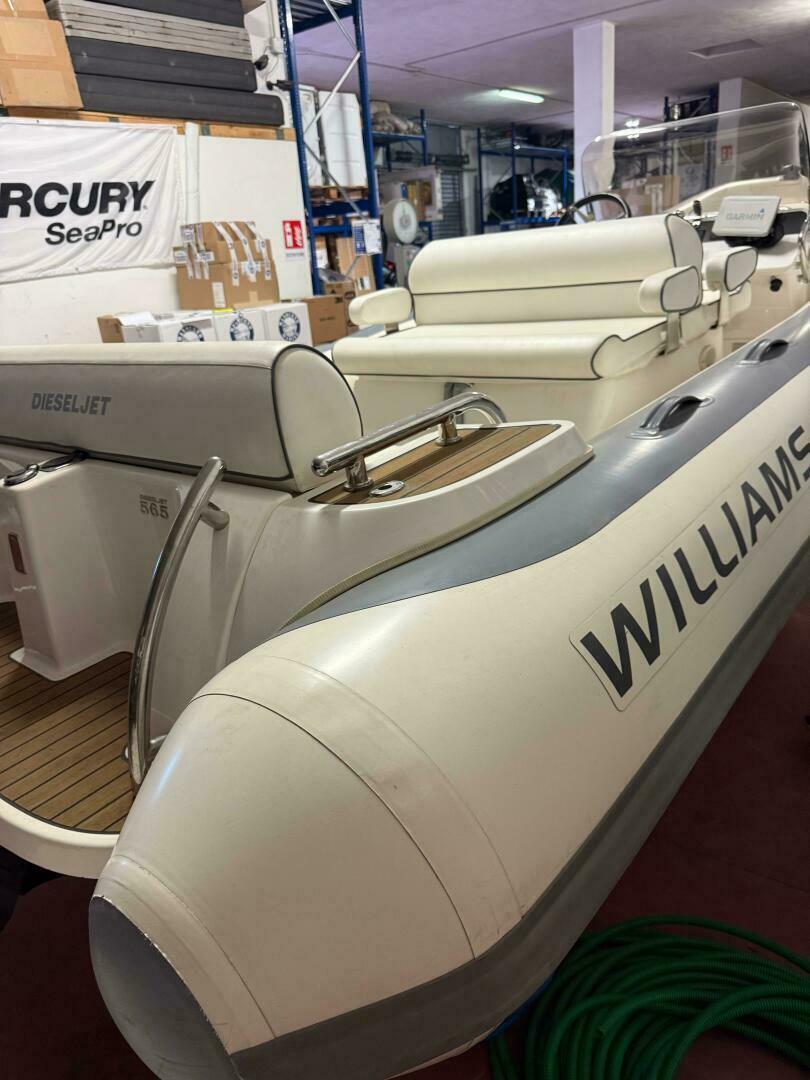 The 2017 Williams DieselJet 565 is a high-performance luxury yacht tender powered by a 150HP Yanmar diesel engine. Seating up to nine passengers, it delivers impressive speed, agile jet handling, and stylish comfort—perfect for quick shore trips or exploring the coastline.