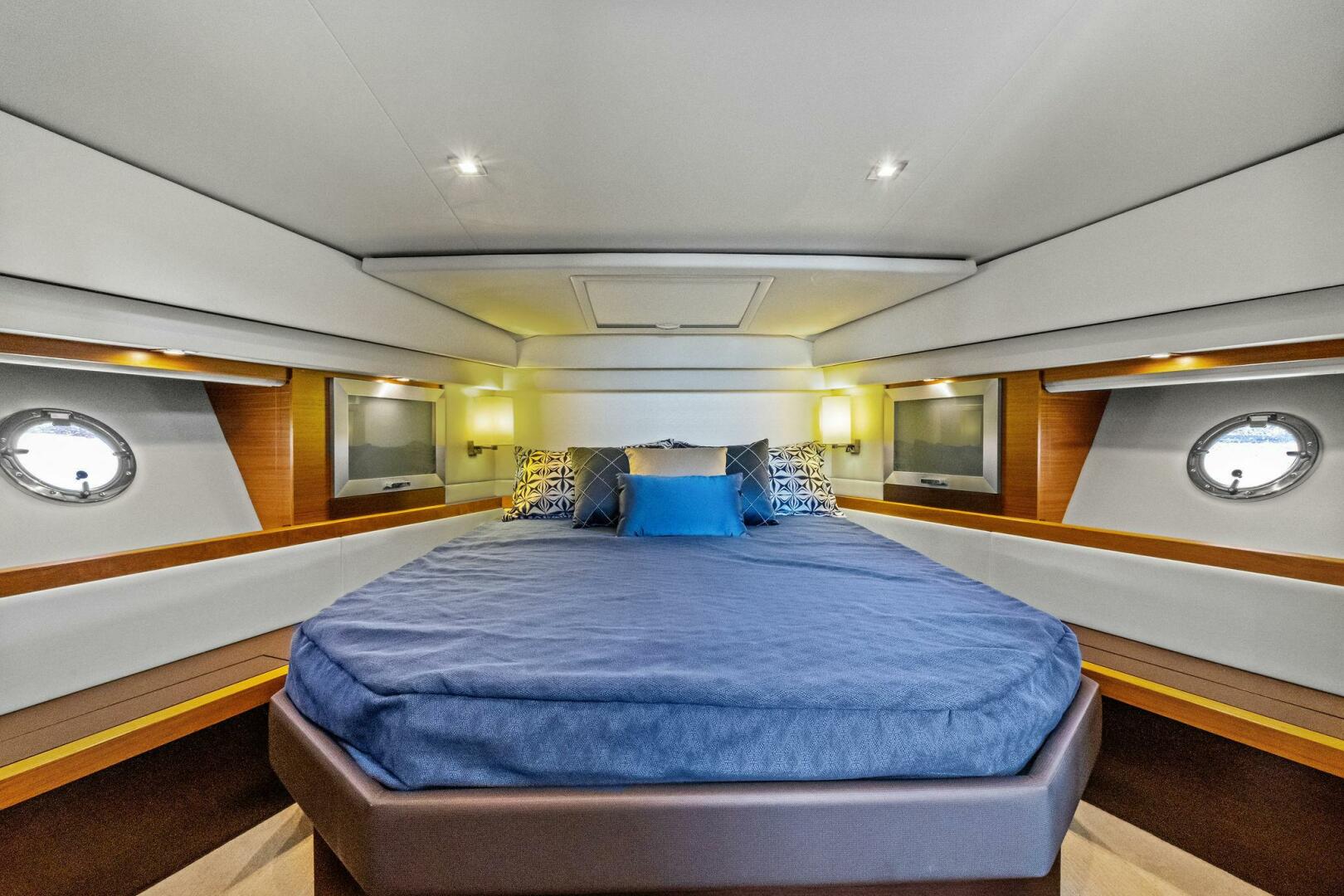 - Private entrance to master stateroom and head opening deck hatch for natural lighting and blinds for Windows: opening ports for ventilation in master stateroom and head