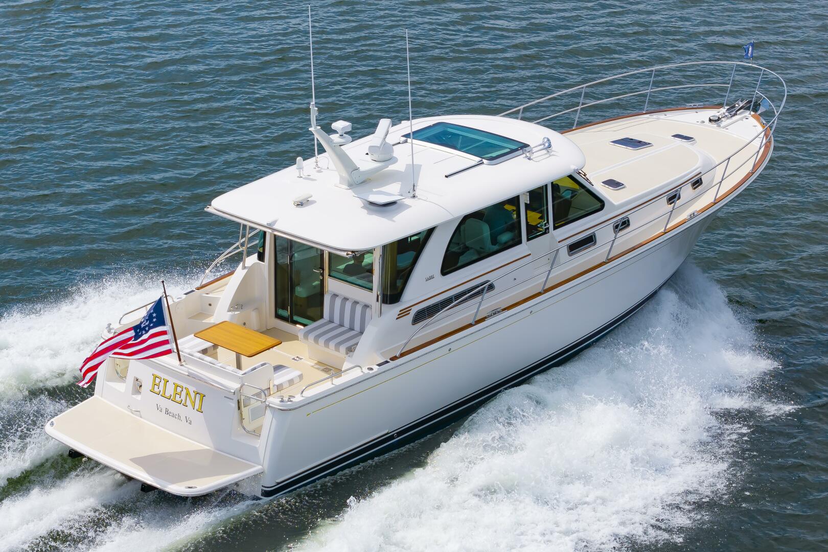 "Eleni" is a practically brand new Sabre 45' SE that was purchased by the original owner just under a year ago. She has only about 40 hours on her Volvo D6 IPS650 480hp engines with 6 more years of full factory warranty on the engines and the pods. She is loaded with equipment including: