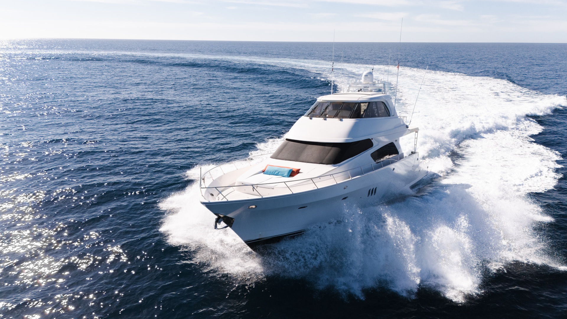 The 2012 69 McKinna Skylounge Yacht - Condors Nest offers the best of both worlds. An incredible cruising platform with large entertainment spaces and a versatile fishing cockpit to fish, dive and explore. This particular yacht is a well-maintained two owner vessel with many well thought-out options and features. If your mission is to travel in ultimate comfort and style and have the versatility of a functional cockpit, call today to schedule a showing on this turn key 69 McKinna Skylounge with Cockpit.