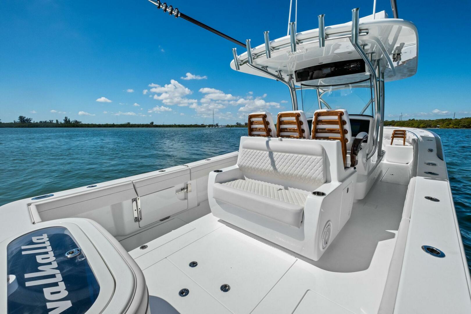 Experience the perfect fusion of performance, innovation, and offshore capability with the Valhalla V‑37 — a model born from the combined expertise of Viking’s legendary engineering team and Michael Peters Yacht Design. Featuring an advanced stepped‑V ventilated tunnel hull, the V‑37 delivers exceptional speed, stability, and fuel efficiency, making every run smoother and more exhilarating.