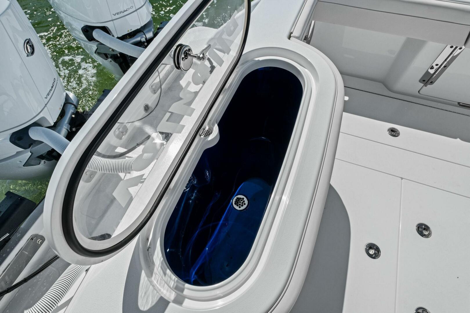 The V‑37’s deck layout is purpose‑built for anglers, with a raised transom livewell, in‑deck fish boxes, abundant rod storage, a port‑side dive door, and thoughtfully designed tackle and gear compartments. At the helm, captains enjoy crystal‑clear visibility through frameless Costa Clear or tempered glass windshields, complemented by premium Llebroc seating or optional Release Marine helm chairs with bolsters and armrests.