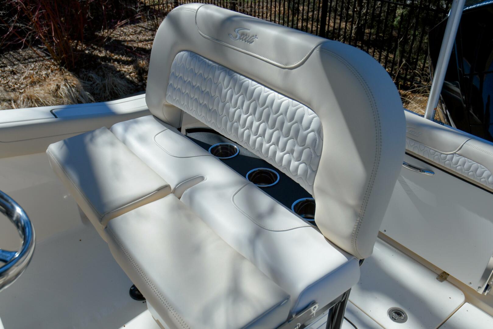 The 220 XSF is built on Scout’s revolutionary fuel-saving NuV3 hull design, with no sacrifice on performance. while the deck offers ample standard amenities for everything from serious fishing to comfort cruising. Built with 100% hand-laid fiberglass, the boat boasts a wide comfortable beam of 8’ 6” with an overall length of 21’ 6”. A notable standard feature onboard the 220 XSF includes not only the forward seating in the bow, but also a forward sun lounge/coffin box complete with a cushion.