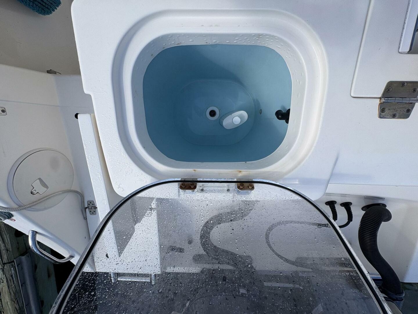 Inside the console, the boat includes an electric head with full stand-up room, a feature that is especially appreciated by guests and family members during longer days on the water.