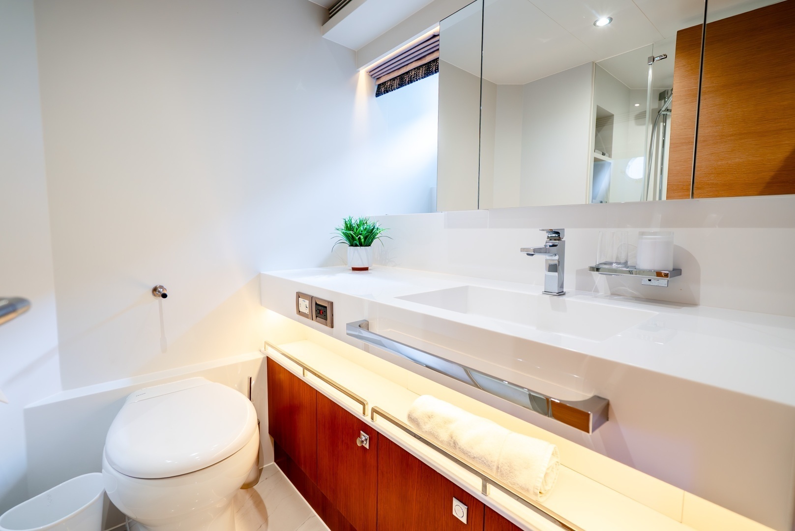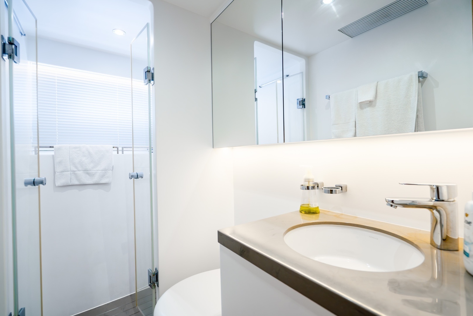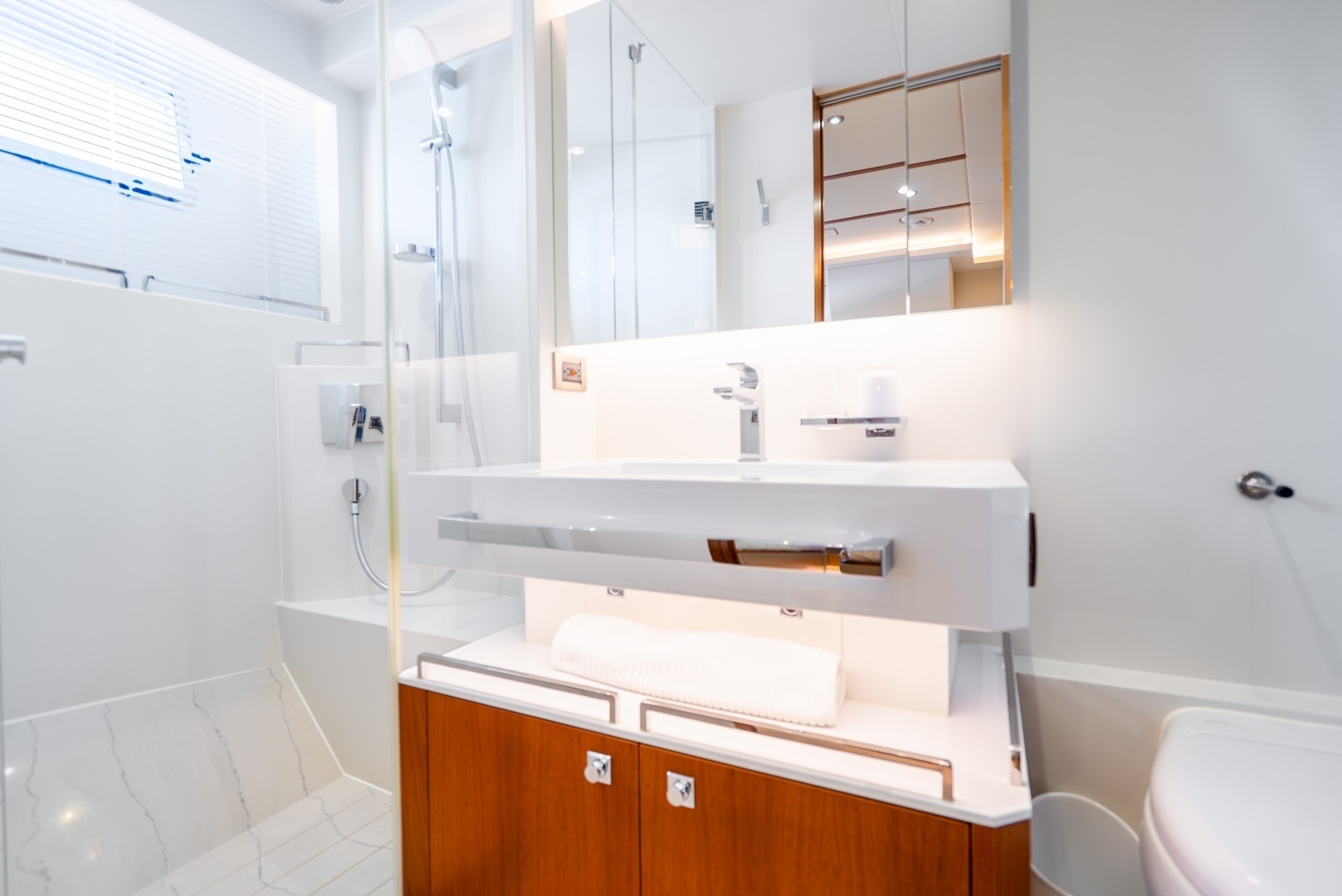 - Hi-Lo privacy screen between galley & salon