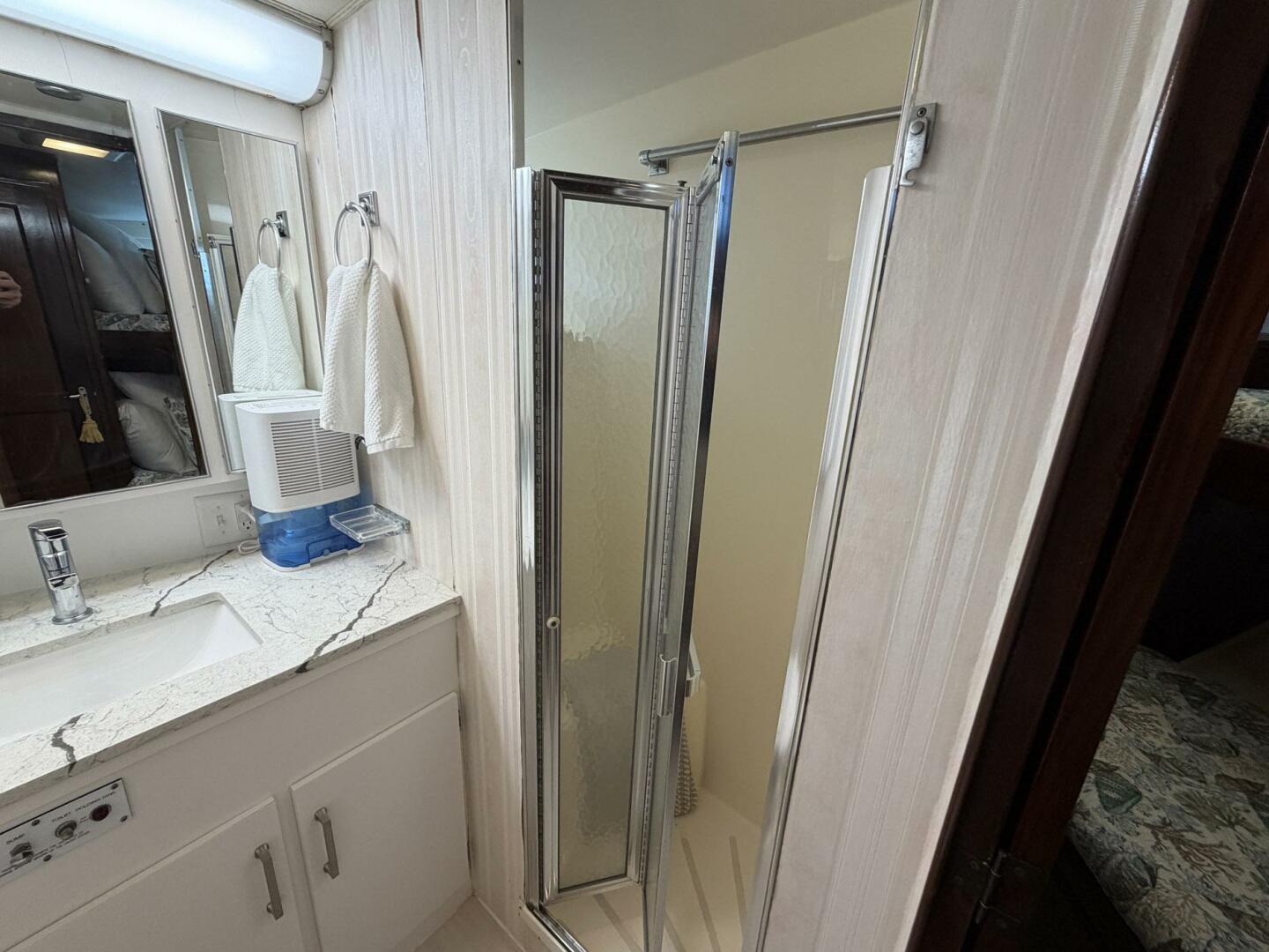 - Separate shower stall with port light