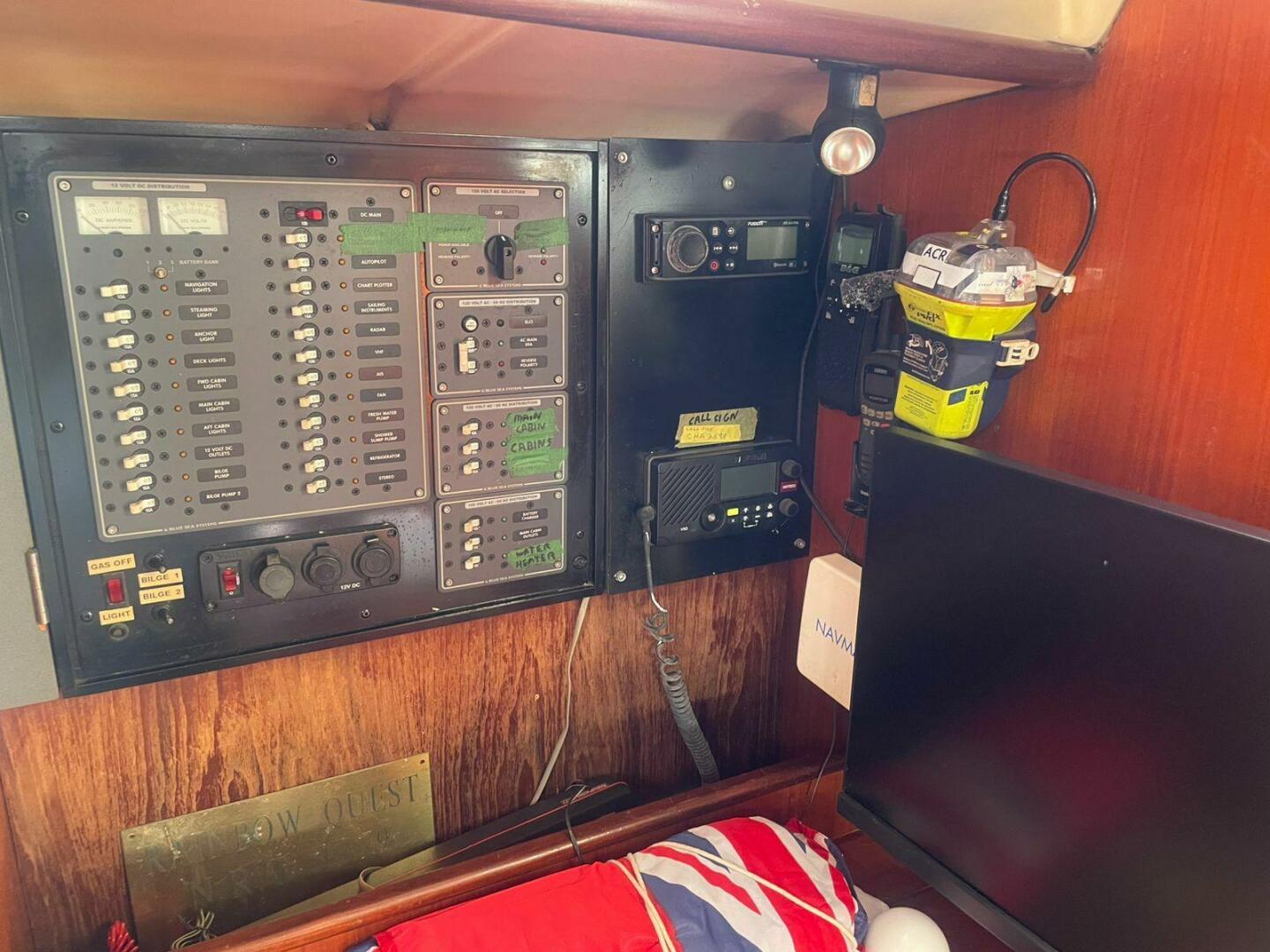 The vessel is powered by a Perkins diesel engine and includes a range of cruising equipment such as solar panels, Victron battery monitoring and charging equipment, autopilot, chartplotter, and VHF communications. These features provide a solid starting point for a capable cruising platform.