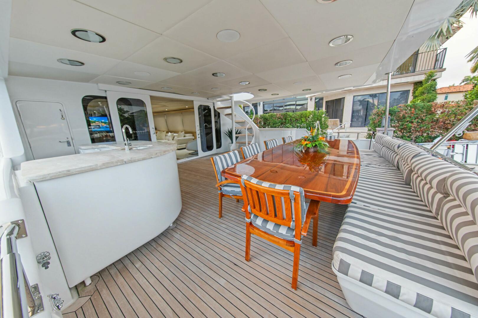The flybridge is the largest party-deck of any vessel in her size range.