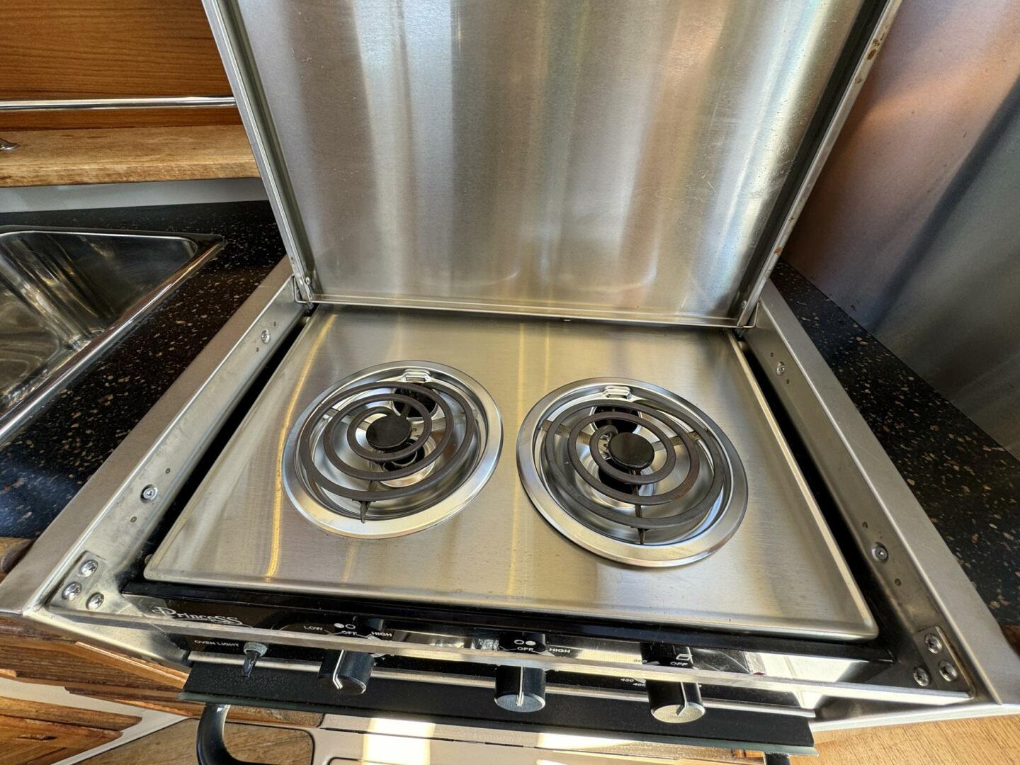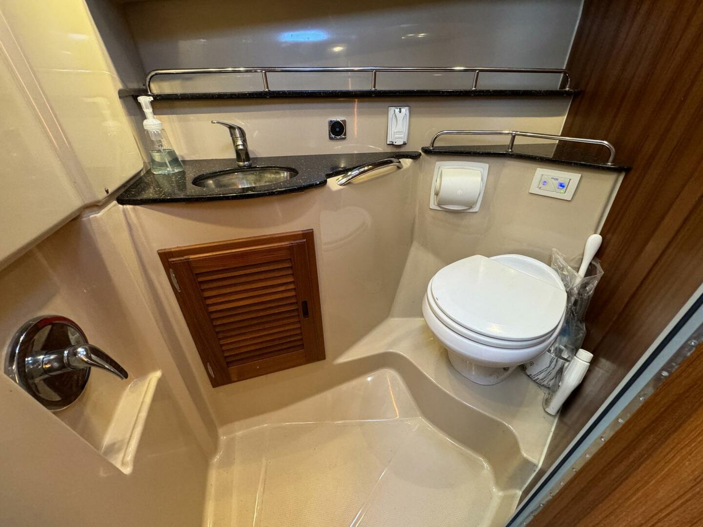 The R-29’s cozy interior incorporates a single-level salon with the galley to port and a convertible dinette to starboard. A convenient pilothouse door at the helm provides easy access to the outside deck.