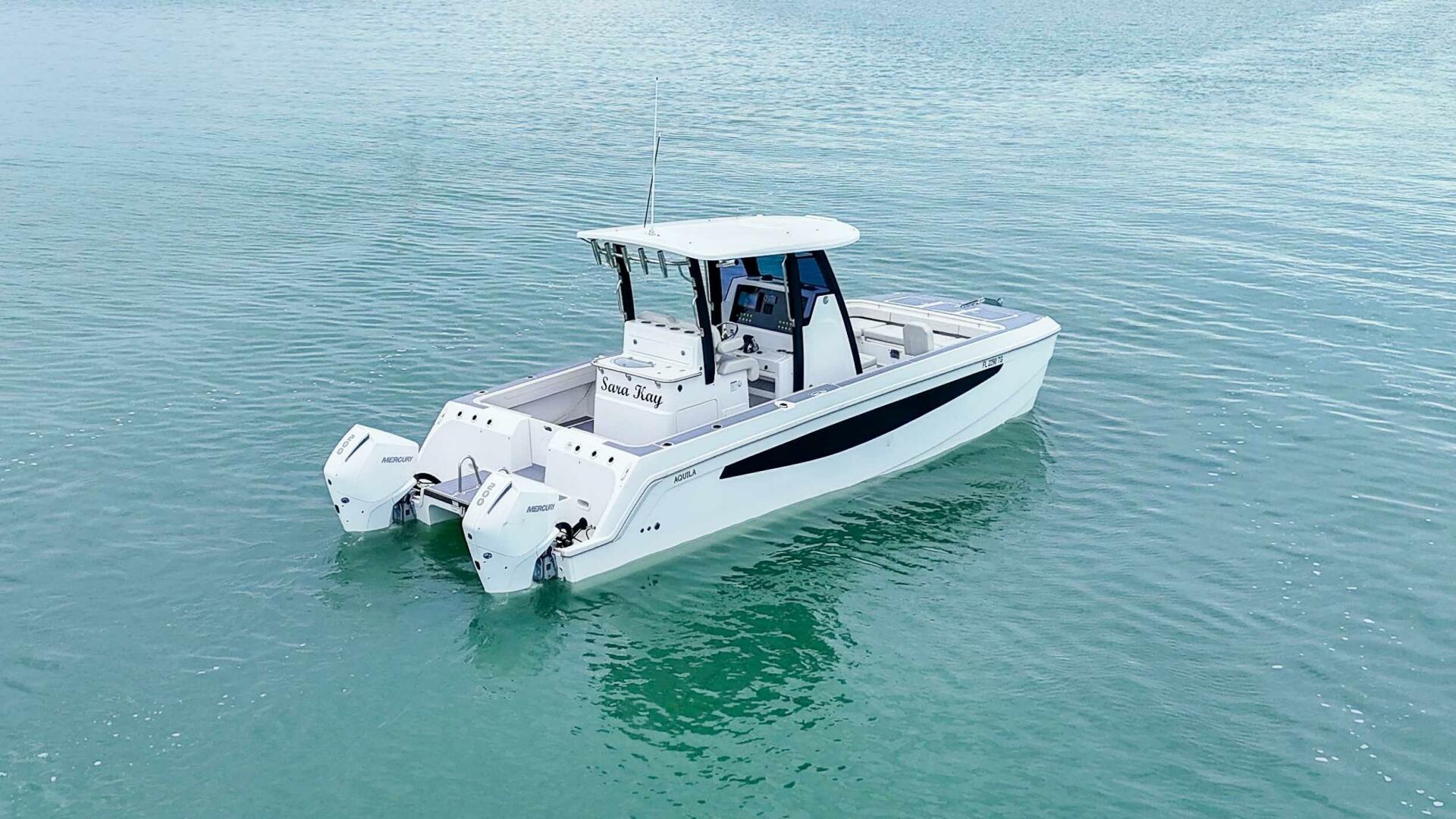 The 2022 Aquila 28 Molokai is a rugged, offshore-capable power catamaran center console designed to blend serious fishing performance with family-friendly versatility, drawing inspiration from the demanding waters surrounding Hawaii’s Molokai Channel. Measuring 30′9″ overall with a 9′8.5″ beam, this twin-engine platform delivers exceptional stability, a dry ride, and confident handling. Powered by twin Mercury Verado outboards with impressive speed, efficiency, and range. Featuring 360-degree walkaround fishability, expansive deck space, a thoughtfully designed helm, and a forward-access day head, the Aquila 28 Molokai stands out as a highly capable offshore boat equally suited for fishing, cruising, diving, and entertaining.