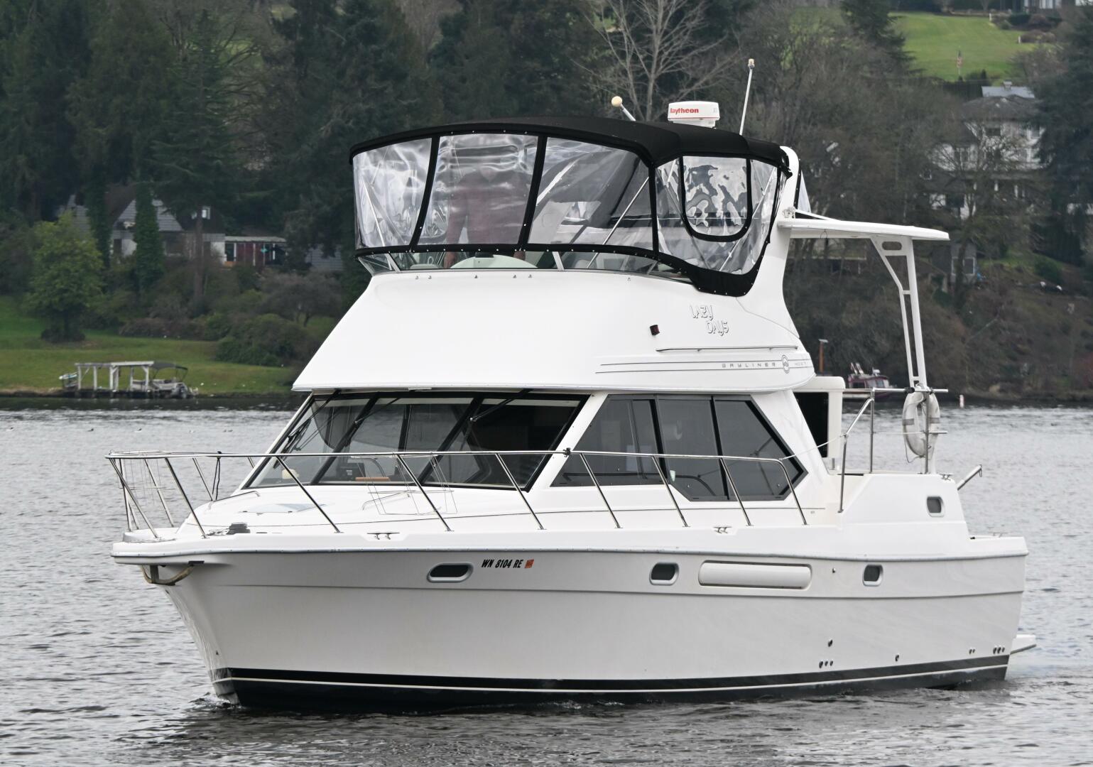 “Lazy Days” is a well-maintained 1996 Bayliner 4087 Motoryacht. She is a classic Pacific Northwest-style flybridge cruiser offering spacious accommodations, dependable Cummins diesel power, and practical cruising systems.