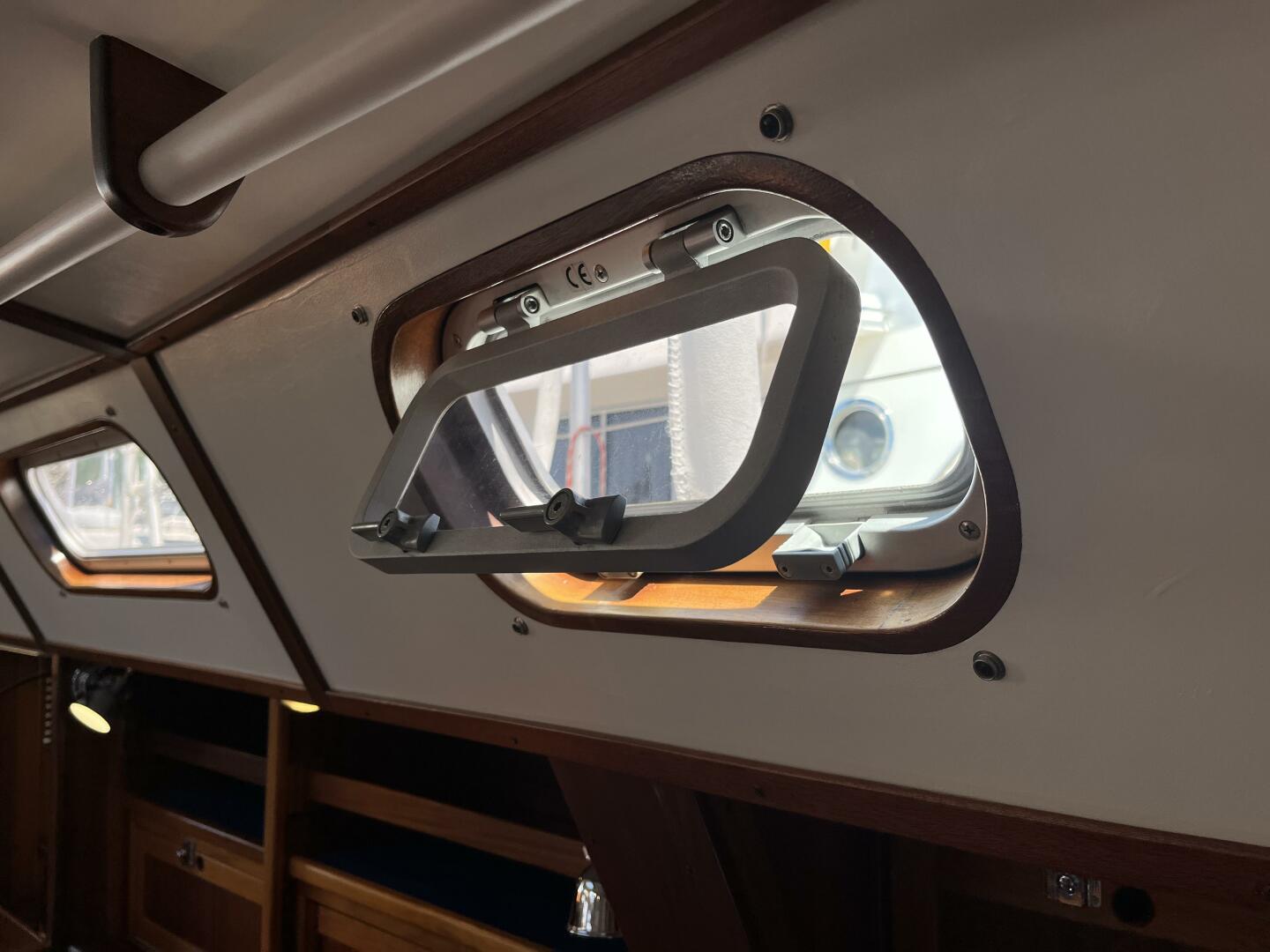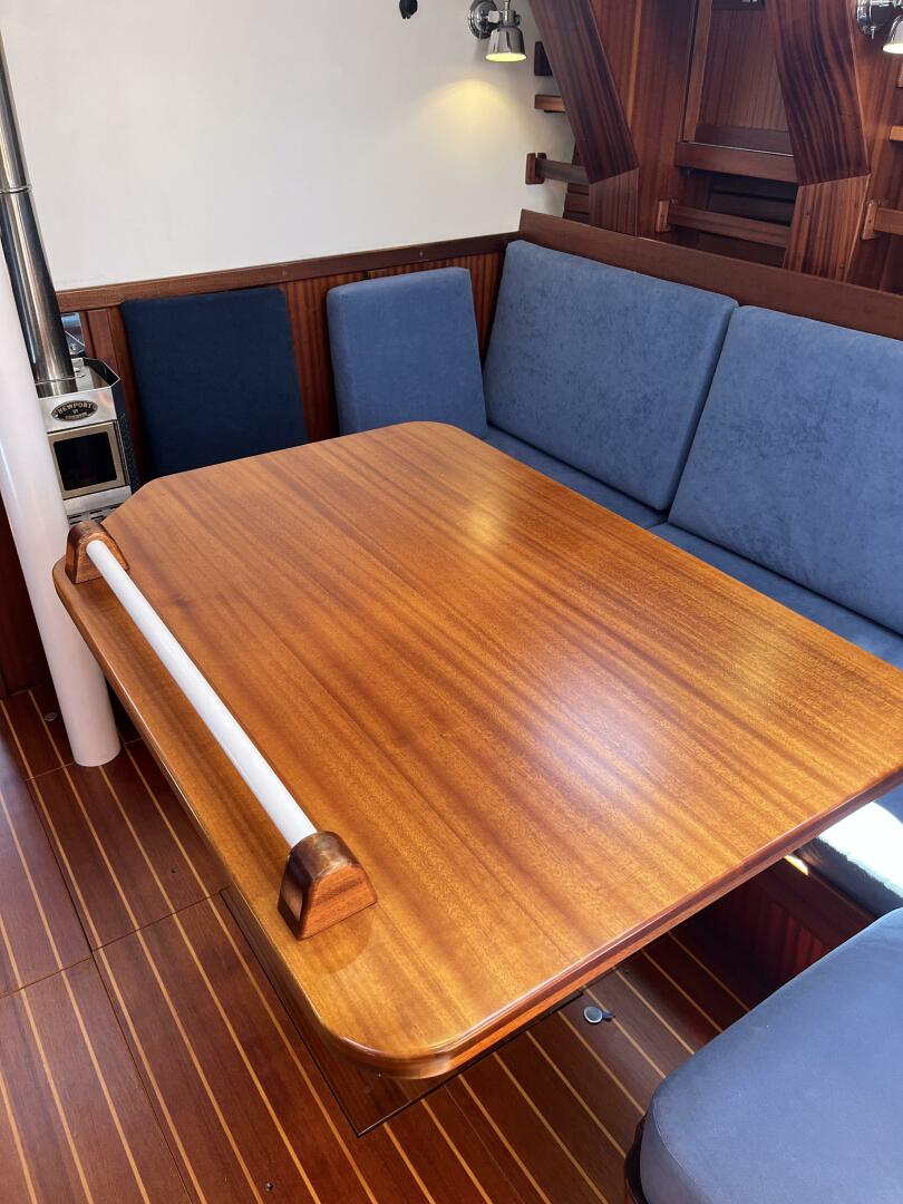 Below deck, BAREFOOT’s layout is both traditional and highly functional, designed for life at sea. A dedicated mechanical room houses critical systems like the generator, heater, and watermaker, while the navigation station is fully equipped with Furuno electronics, SSB, AIS, and Iridium GO satellite phone. The interior layout features a master cabin forward with large head, spacious salon, secure U-shaped galley and a open quarterberth aft. Secure handholds, ample storage, and practical safety features throughout. Heating is provided by two independent systems and there is excellent ventilation via opening ports and hatches throughout. Storage is optimized for long term life aboard. Every detail reflects a commitment to offshore readiness and self-sufficiency, making BAREFOOT a well-engineered, expertly built yacht for serious bluewater voyaging.