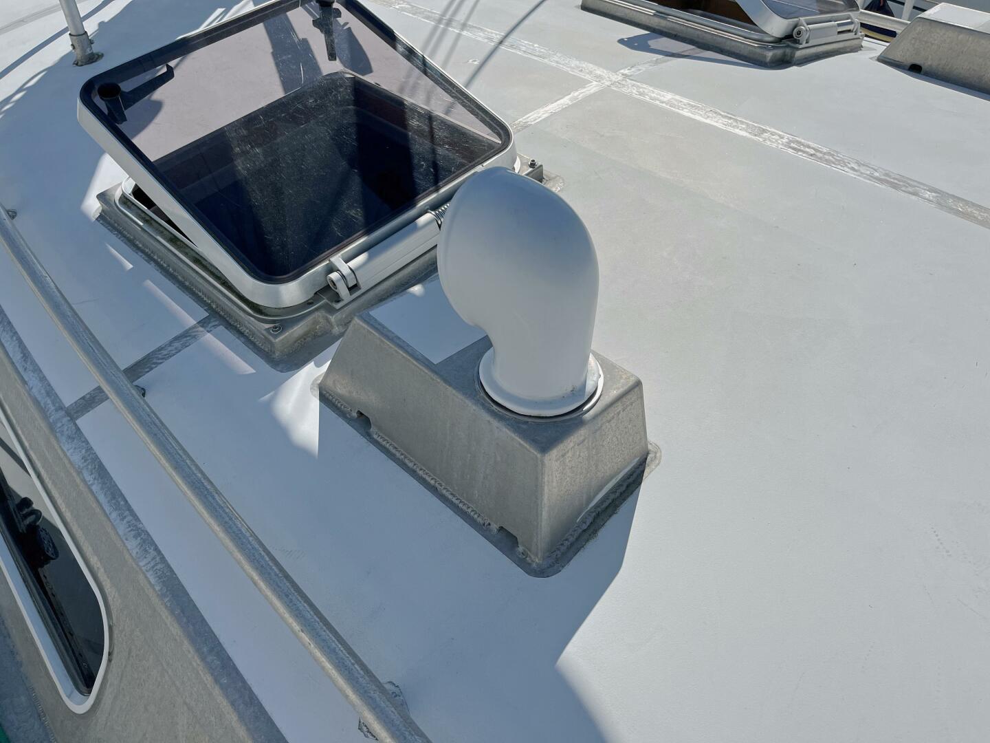 Insulation: A properly insulated aluminum hull and deck keeps the boat interior cool in tropical warm waters (no sun canopy is needed), warm in high latitude cold waters, and prevents hull and deck condensation leading to mold and mildew. The deck and hull (including frames and stringers) are fully insulated (above the WL) with Armaflex closed cell foam. This foam does not burn and is easily removed and replaced if modifications or repairs are needed. Commonly used spray-in-foam in metal boats is flammable and is difficult to scrape away for repairs.
